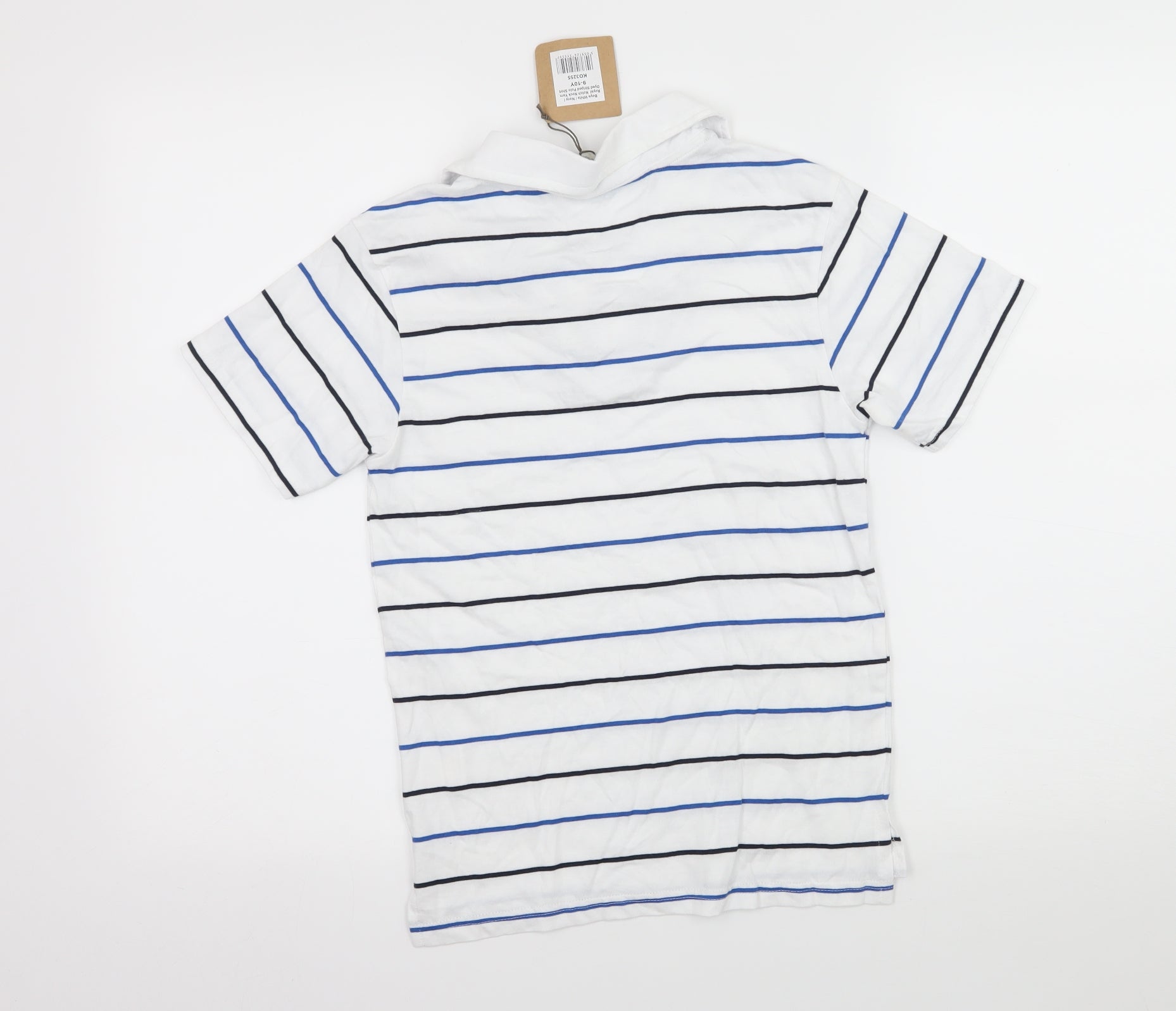 Boys White Striped Jersey Basic T-Shirt Size 9-10 Years