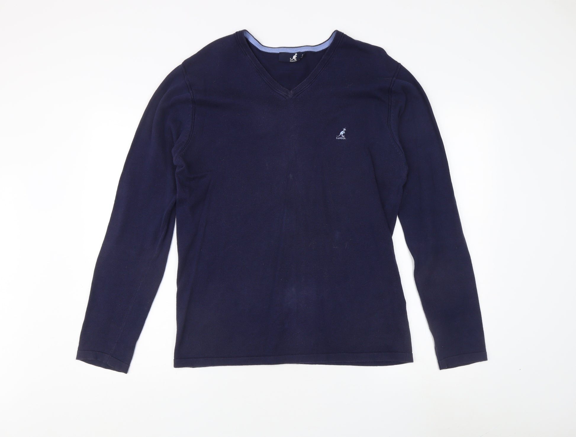 Step up your style game with this sleek Kangol pullover jumper, designed for the contemporary man. Crafted from 100% pure cotton, it guarantees a comfortable and breathable fit, making it perfect for all seasons. This jumper comes in a versatile blue hue, easily paired with any casual or smart-casual wardrobe essentials. The V-neckline adds a touch of sophistication while maintaining a laid-back vibe, and the long sleeves make it an ideal layering piece for cooler days. Its regular fit ensures a flattering silhouette for any body type. Whether worn over a crisp shirt for a business-casual look or paired with jeans for a relaxed weekend outing, this jumper is a wardrobe staple that offers infinite versatility. Embrace quality and style with Kangol, and make this jumper your go-to choice for effortless fashion.