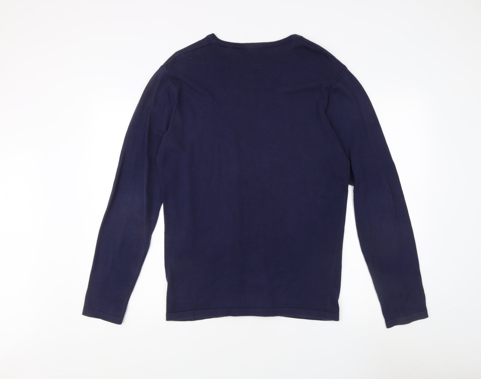 Blue Men's Pullover Jumper, Size S, V-Neck, Cotton