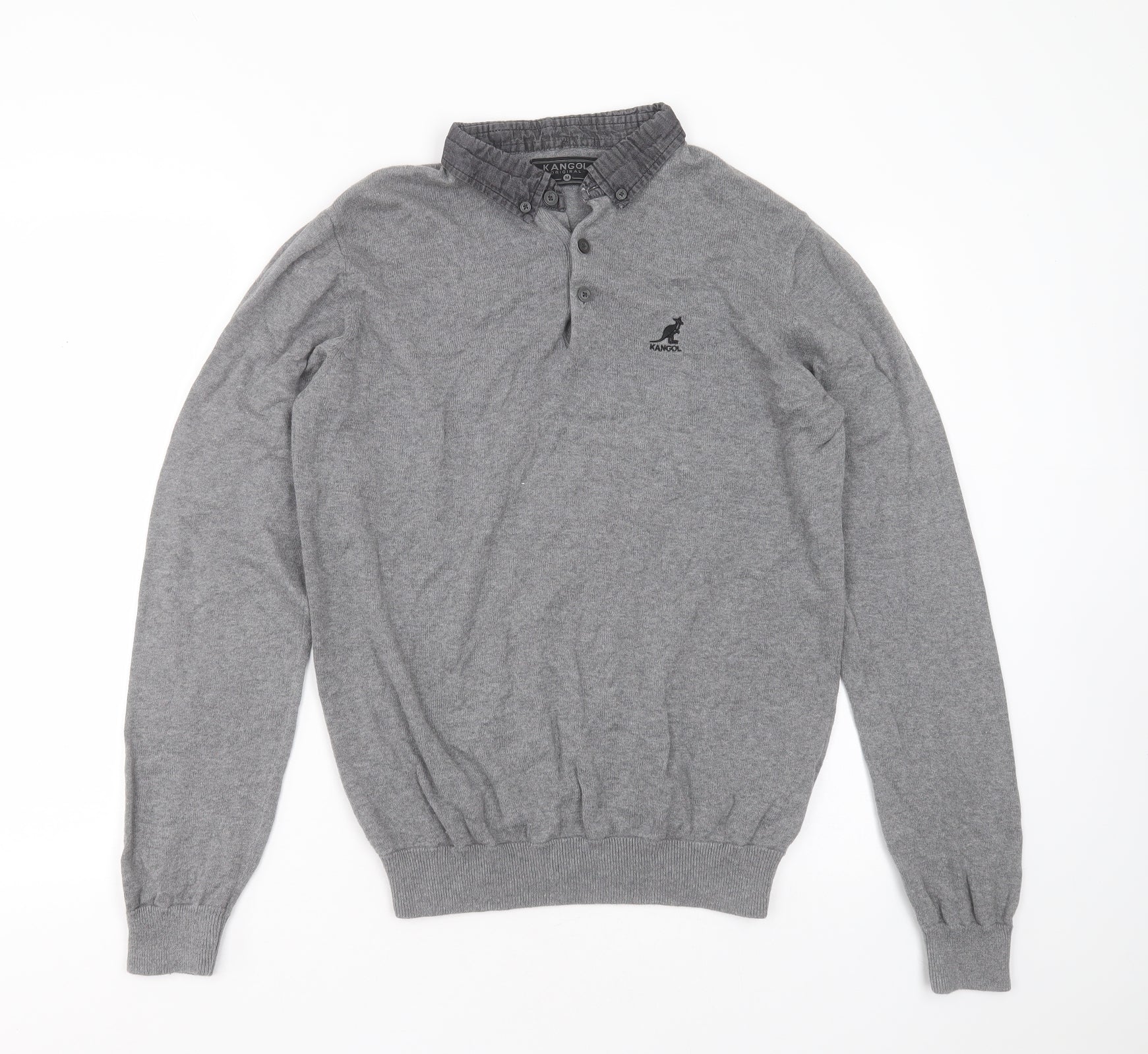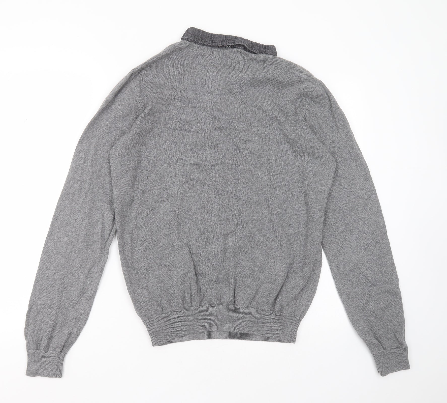 Mens Grey Collared Cotton Pullover Jumper Size M