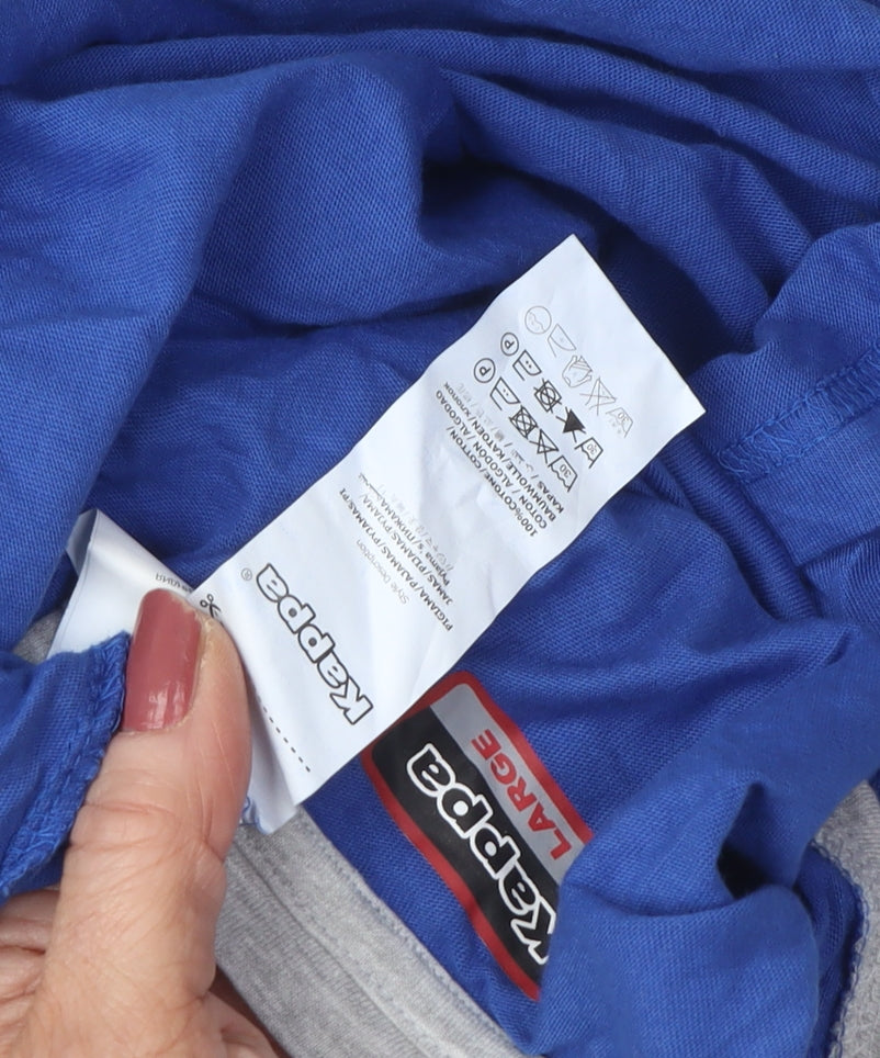 Introducing this stylish Kappa pyjama top, perfect for cosy nights in or lounging around the house. This top features a distinctive colourblock design in blue and grey, crafted from soft jersey fabric to ensure maximum comfort. The long sleeves are ideal for keeping warm in autumn and winter, while the button closure adds a touch of classic style. With a comfortable crew neckline and regular fit, this pyjama top is designed for men who appreciate both comfort and style. Showcasing the iconic Kappa logo accent, this top reflects a sporty yet casual vibe. Created from 100% cotton, its machine washable fabric ensures easy care, making it a practical choice for everyday wear. While the top is in excellent condition, it's slightly wrinkled, reflecting its preloved status. Wrap yourself in comfort and style with this essential piece of nightwear. Grab it now while stocks last!