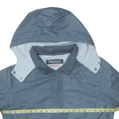 Step out in effortless sporty style with this Kappa men's hooded windbreaker jacket in classic blue. Designed for practicality and comfort, this jacket blends a lightweight 100% nylon shell with a soft 100% cotton lining, offering both breathability and protection against breezy conditions. Its regular fit ensures versatile wear over layers, while the elasticated cuffs and hem help keep out the wind. The jacket includes a full front zip closure, secure zipped pockets for essentials, and the iconic Kappa logo detail at the chest for a distinctive athletic touch. The attached hood, with a contrasting grey lining and snap fastenings, provides extra coverage against unpredictable weather, making it an ideal choice for spring and autumn outings. Perfect for casual wear, travel, or light outdoor activities such as walking, jogging, or trips to the gym, this windbreaker brings both function and retro charm to your wardrobe. The stand-up collar and smooth nylon texture maintain a smart, sporty look, while the clean blue tone coordinates easily with jeans, joggers, or activewear. Overall, it’s a stylish, durable addition to any man’s outerwear selection — offering reliable comfort, timeless sports appeal, and a touch of Kappa heritage. Whether layered for an early morning run or thrown on for errands about town, this jacket performs effortlessly across seasons while keeping you looking sharp and athletic.