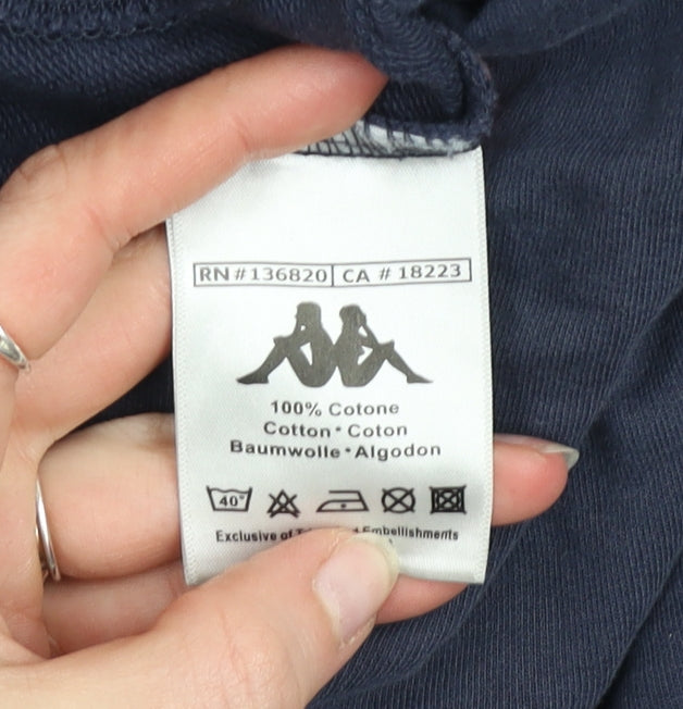 Get active or relax in comfort with these Kappa Men's Blue Jogger Trousers, crafted in breathable 100% cotton for everyday wear. The soft jersey fabric offers durability and natural stretch, making these joggers ideal for gym sessions, running, or laid-back lounging. Designed in a versatile navy blue shade, they pair easily with hoodies, T-shirts, or trainers for a stylish, athletic look. The adjustable drawstring waist and elasticated cuffs ensure a secure and comfortable fit, while the two convenient front pockets provide practical storage for essentials like keys or a phone. Featuring the classic Kappa logo on the leg, these joggers add a sporty edge to your casual wardrobe. The midweight cotton material feels soft against the skin and controls temperature effectively, making them suitable for cooler seasons such as autumn, spring, and winter. The relaxed yet tapered fit provides both style and ease of movement, keeping your silhouette clean while allowing full flexibility whether you’re training or on the go. With their timeless design and durable cotton fabric, these trousers combine quality craftsmanship with effortless everyday practicality. Overall, these Kappa joggers are a great choice for men who value comfort, breathability, and a modern athletic aesthetic in their casualwear. Please note, the condition is very good, with only a minor mark on the leg that does not affect overall appearance or performance. A smart, reliable option for active and casual wear alike, ideal for adding sporty versatility to your wardrobe.