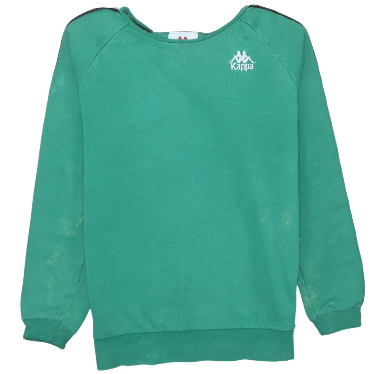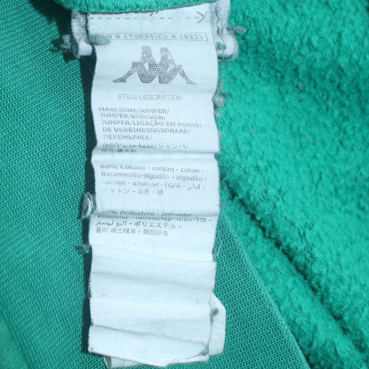 Step into the classic athletic style of this Kappa Men’s Green Pullover Sweatshirt. Crafted from a comfortable blend of 60% cotton and 40% polyester, this sweatshirt provides a soft, breathable finish while retaining shape and warmth. The vibrant green colour offers a bold retro statement, while Kappa’s iconic logo stands proudly across the chest, symbolising timeless sportswear heritage. The long-sleeve design and ribbed cuffs ensure a comfortable fit for all-day wear, ideal for layering during the cooler seasons of autumn, winter, or early spring.The sporty tape detailing featuring Kappa’s signature logo runs along the sleeves, adding an iconic track-style accent that enhances its vintage sports appeal. Built for versatility, this pullover sweatshirt suits casual streetwear looks, gym sessions, or relaxed weekends alike. Lightweight yet cosy, it provides dependable warmth without bulk, making it ideal for men who value athletic functionality and urban aesthetics.With its regular fit and crew neckline, it delivers both comfort and a clean silhouette. The machine-washable fabric ensures easy care, perfect for everyday use. Although gently used with minor wear marks visible on the sleeves, the sweatshirt remains in good overall condition, reflecting just the right amount of character from previous wear.Whether paired with joggers, jeans, or athletic shorts, this Kappa sweatshirt completes an effortlessly cool and sporty look. A great choice for football enthusiasts, gym-goers, runners, or anyone who appreciates timeless branded sportswear. Secure this standout piece today to add a classic and comfortable layer to your active wardrobe with unmistakable Kappa flair.