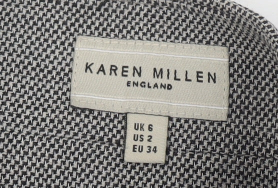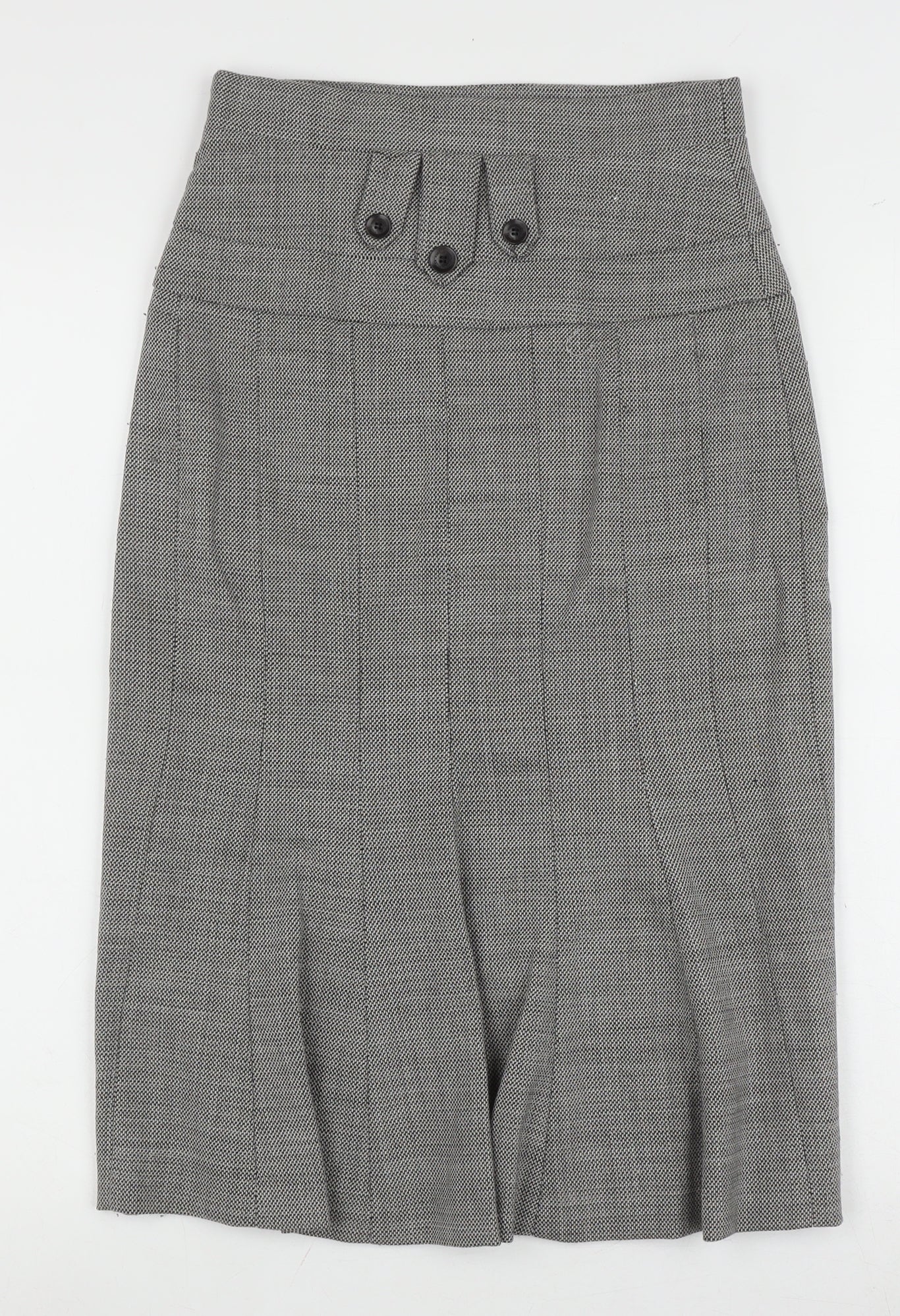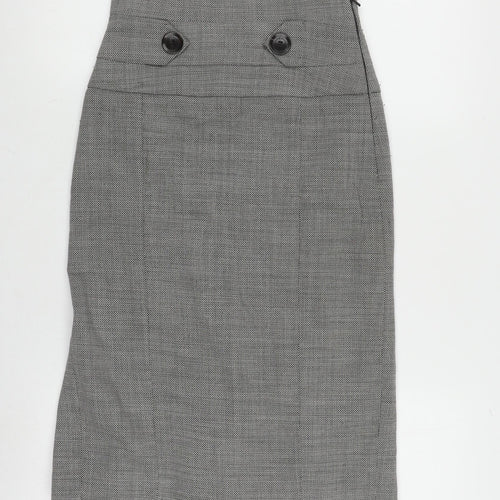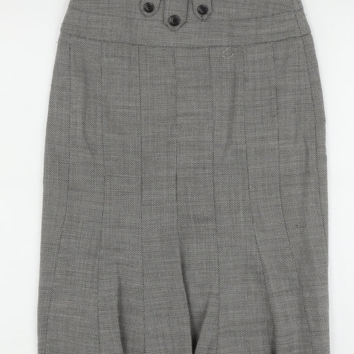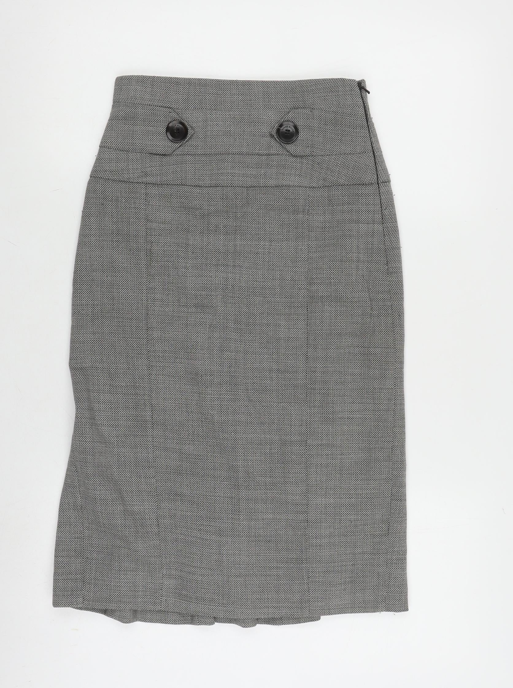 Elevate your office wear with this elegant Karen Millen straight and pencil skirt. Designed to sit comfortably at the knee, this grey tweed skirt is perfect for business occasions. The sturdy wool, polyester, and elastane blend provides warmth, ideal for the cooler autumn and winter months. Large buttons act as stylish accents that add character to the classic piece. The zip closure ensures a secure and comfortable fit, while the sleek design flatters a regular size type. Ideal for professional settings, this unpatterned, mid-rise skirt will make a sophisticated addition to your wardrobe. Whether you're dressing for a meeting or an office day, this smart pencil skirt will keep you looking polished and poised.