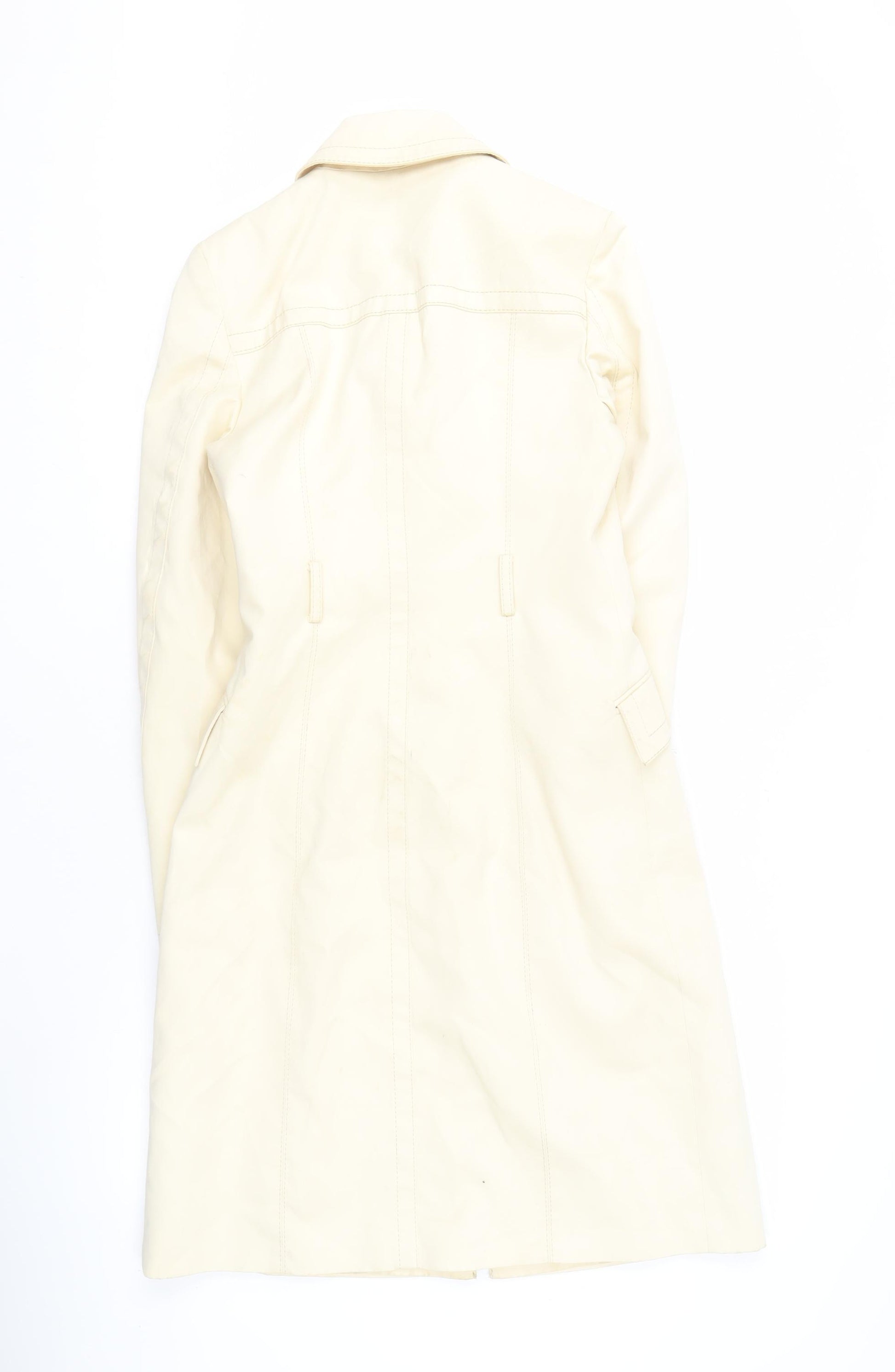 Elevate your wardrobe with this elegant Karen Millen trench coat in a sophisticated ivory hue. Designed with the modern woman in mind, this coat offers a blend of style and functionality. Its regular fit and long sleeve design make it perfect for business meetings or casual outings. Crafted from a blend of polyester, cotton, and polyurethane, the outer shell provides durability while maintaining a polished look. The coat is fully lined with acetate, ensuring comfort and a smooth feel against the skin. Adorned with classic button accents and practical pockets, this coat marries form and function seamlessly. The zip closure allows for easy wear, making it a convenient choice for everyday use. Ideal for transitional seasons like autumn and spring, this trench coat is your go-to piece for versatile styling. Pair it with tailored trousers for a corporate look or drape it over a casual ensemble for a chic, laid-back vibe. This elegant piece is designed to offer both warmth and style, ensuring you step out with confidence. Embrace the classic theme of this Karen Millen trench and enjoy the timeless appeal it brings to your collection. Priced affordably at £49.75, it's a must-have investment for any fashion-forward wardrobe. Note: The coat is in excellent condition with no visible damage, and requires dry cleaning only for garment care.