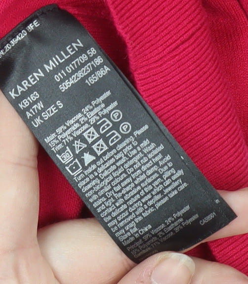Make a statement with this eye-catching Karen Millen Women's Red Cold Shoulder Pullover Jumper, designed perfectly for a blend of style and comfort. Crafted from a premium blend of viscose, polyamide, and elastane, this jumper ensures a lightweight feel and a regular fit that flatters the silhouette. The vibrant red knit is adorned with ruffle accents and elegant studs, offering a chic touch that sets you apart. Ideal for autumn and spring, its tight-knit fabric keeps you cozy while embracing a modern, sophisticated look. This pullover features a crew neck paired with a unique cold shoulder sleeve, adding a fashionable twist that is perfect for casual outings or a stylish party. Karen Millen’s design sensibility is unmistakable in this piece, effortlessly combining utility and fashion-forward detail. Complete your ensemble with jeans for a relaxed day look or with statement jewellery for evening elegance. This jumper suits many occasions, ensuring versatility in your wardrobe. Available in a regular S size, it maintains a polished appearance that's both breathable and form-fitting. Perfectly embracing casual and party vibes, it remains easy to maintain. Select this jumper to elevate your closet with Karen Millen’s signature blend of elegance and contemporary flair.
