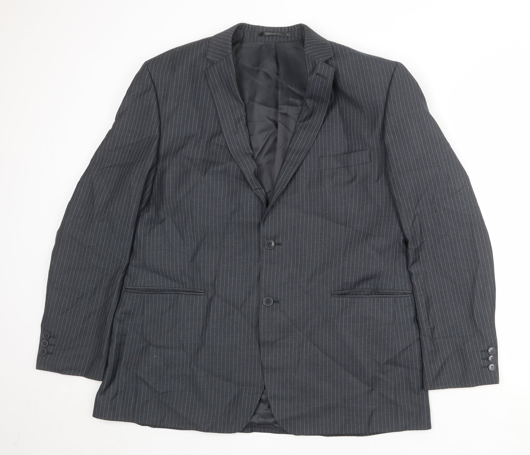 Mens Grey Striped Polyester Jacket Suit Jacket Size 44 Regular