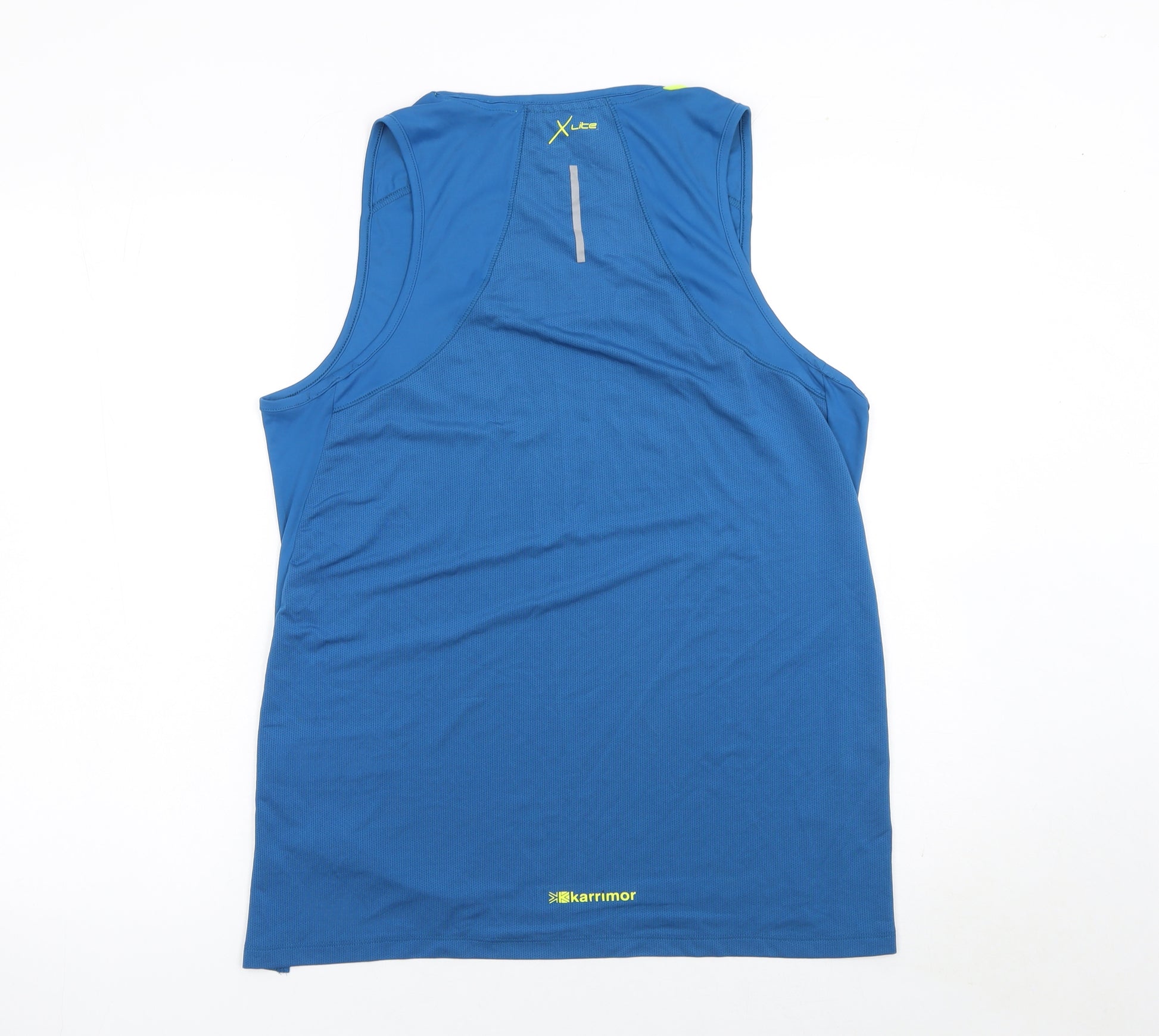Stay cool and comfortable during workouts with this Karrimor Men's X-Lite Running Tank Top in blue. Crafted from a soft, lightweight polyester and Lycra blend, it offers a breathable fit that moves easily with the body. The moisture-wicking fabric keeps you dry, while the sleeveless design allows maximum freedom of movement on warmer days. Designed specifically for men with an athletic fit, this tank provides excellent performance for running, gym training, and other active pursuits. Reflective logo detailing enhances visibility in low light, keeping you safer on early morning or evening runs. The smooth fabric construction and scoop neckline ensure comfortable wear without irritation, while the regular fit offers a flattering look for most body shapes. In very good condition overall with minor faint marks on the front, this stylish and practical top remains a reliable option for those who value versatile activewear. Ideal for summer and spring seasons, it pairs easily with shorts, joggers, or athletic tights. Whether you’re taking on a race, hitting the gym, or enjoying outdoor activities, this Karrimor X-Lite tank is a perfect blend of function and style. Enjoy a trusted piece from a well-known sportswear brand built to support performance and comfort at every level.