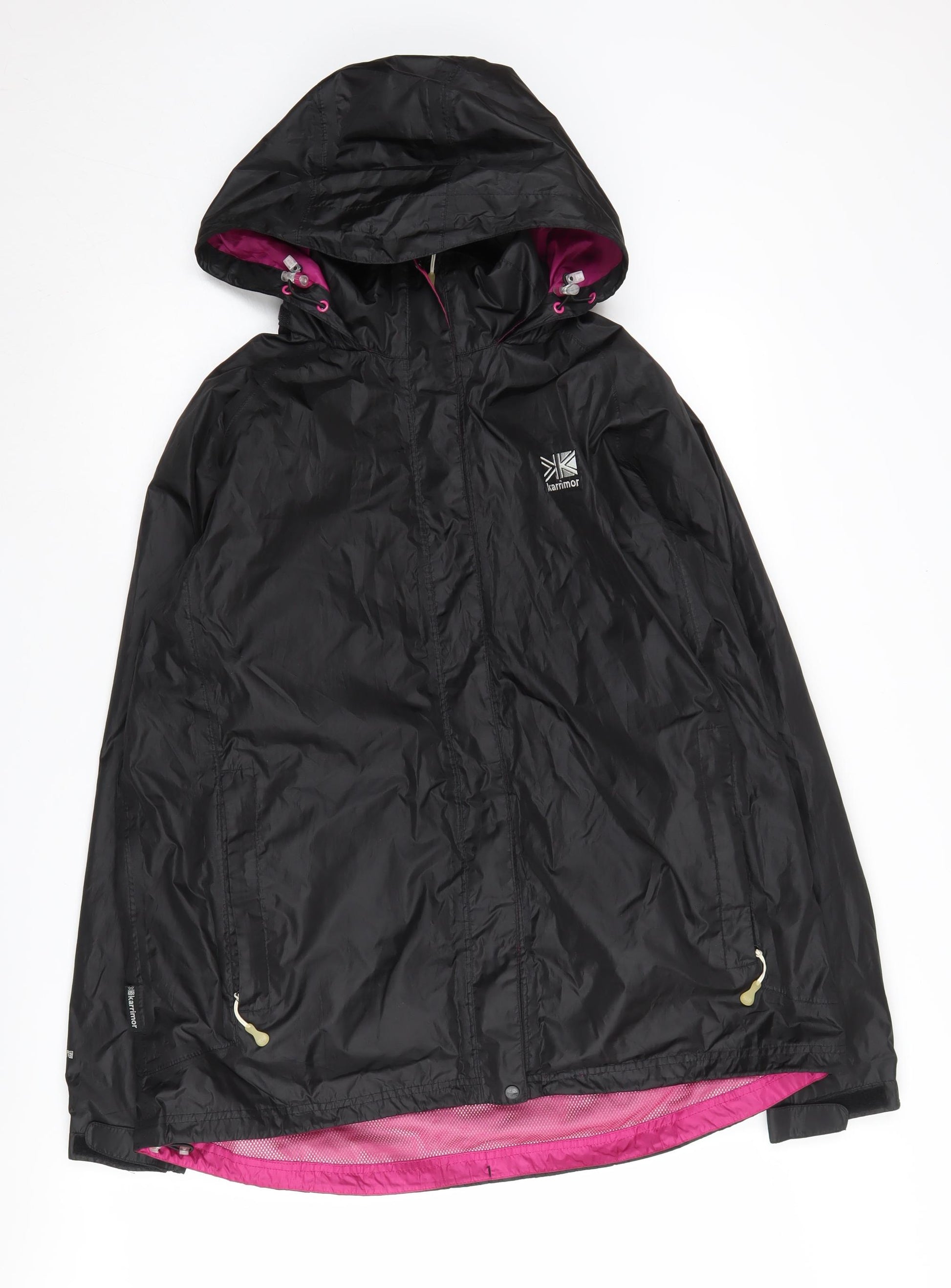 Stay dry and stylish with this Karrimor Women's Black Hooded Rain Jacket, perfect for outdoor enthusiasts. Designed for comfort and practicality, this jacket features a regular fit and is crafted from 100% polyester, offering a lightweight yet durable shield against the elements. Ideal for spring and autumn outings, this raincoat is tailored to keep you cosy without compromising on breathability, ensuring you remain comfortable during unpredictable weather.The jacket boasts a sleek design with a full zip closure and a practical hood to guard against showers. Its mid-length cut provides ample coverage, making it a great choice for those blustery days. Equipped with convenient zipped pockets, it offers handy storage for your essentials while on the go, whether you're on a hiking trail or exploring the city.With a classic black hue, this versatile piece easily matches any wardrobe. Its lined interior adds an extra layer of warmth and comfort, making it not just functional but also a pleasure to wear. The Weathergear feature further enhances its suitability for adventures, ensuring you're well-protected come rain or shine.In very good condition, this jacket shows minimal signs of wear and offers you great value. Perfectly machine washable, it requires little maintenance, so you can focus more on your outdoor journeys. Enhance your wardrobe with this reliable addition and enjoy the perfect blend of style, function, and comfort. An ideal pick for casual or travel occasions, it’s time to champion the rain with confidence.