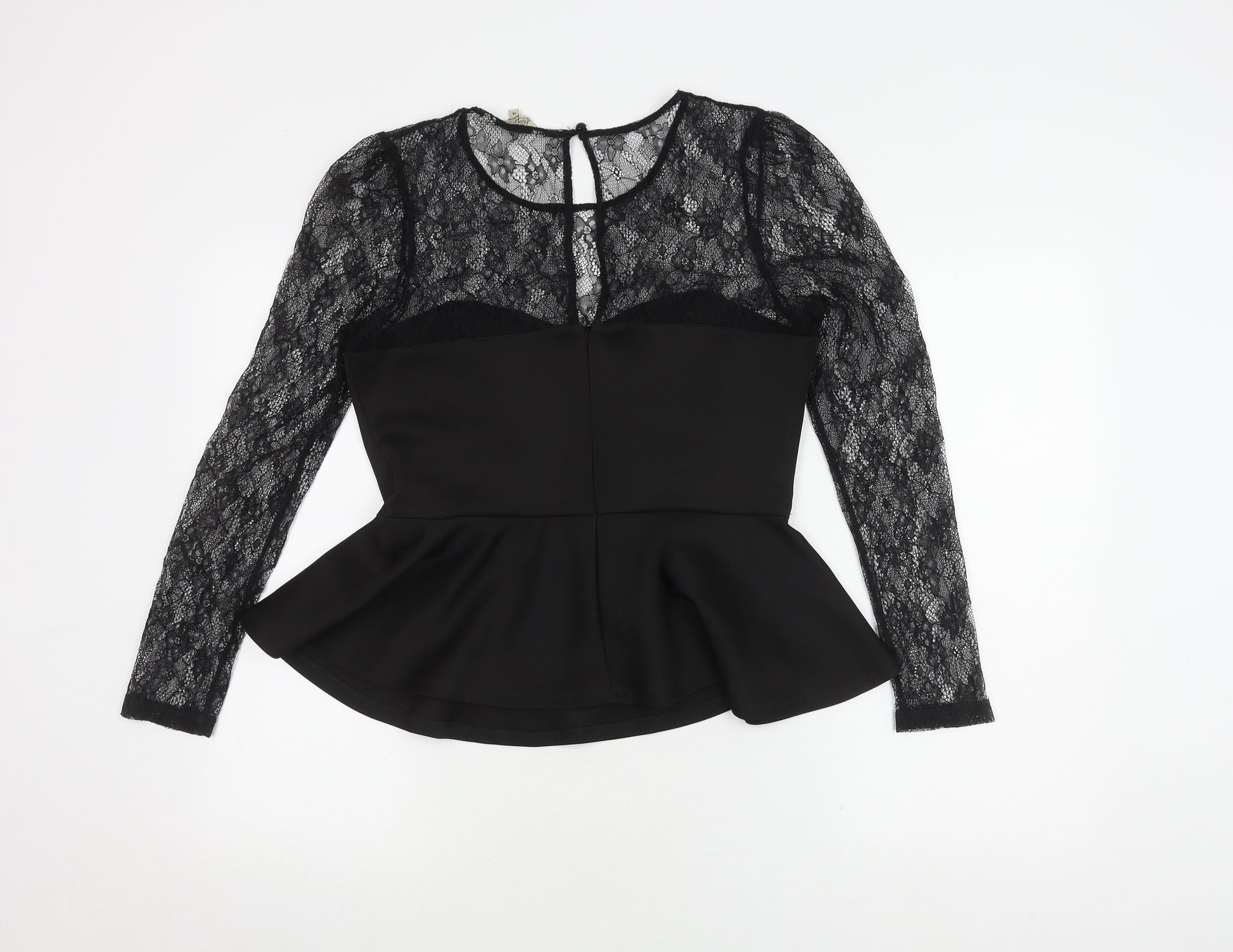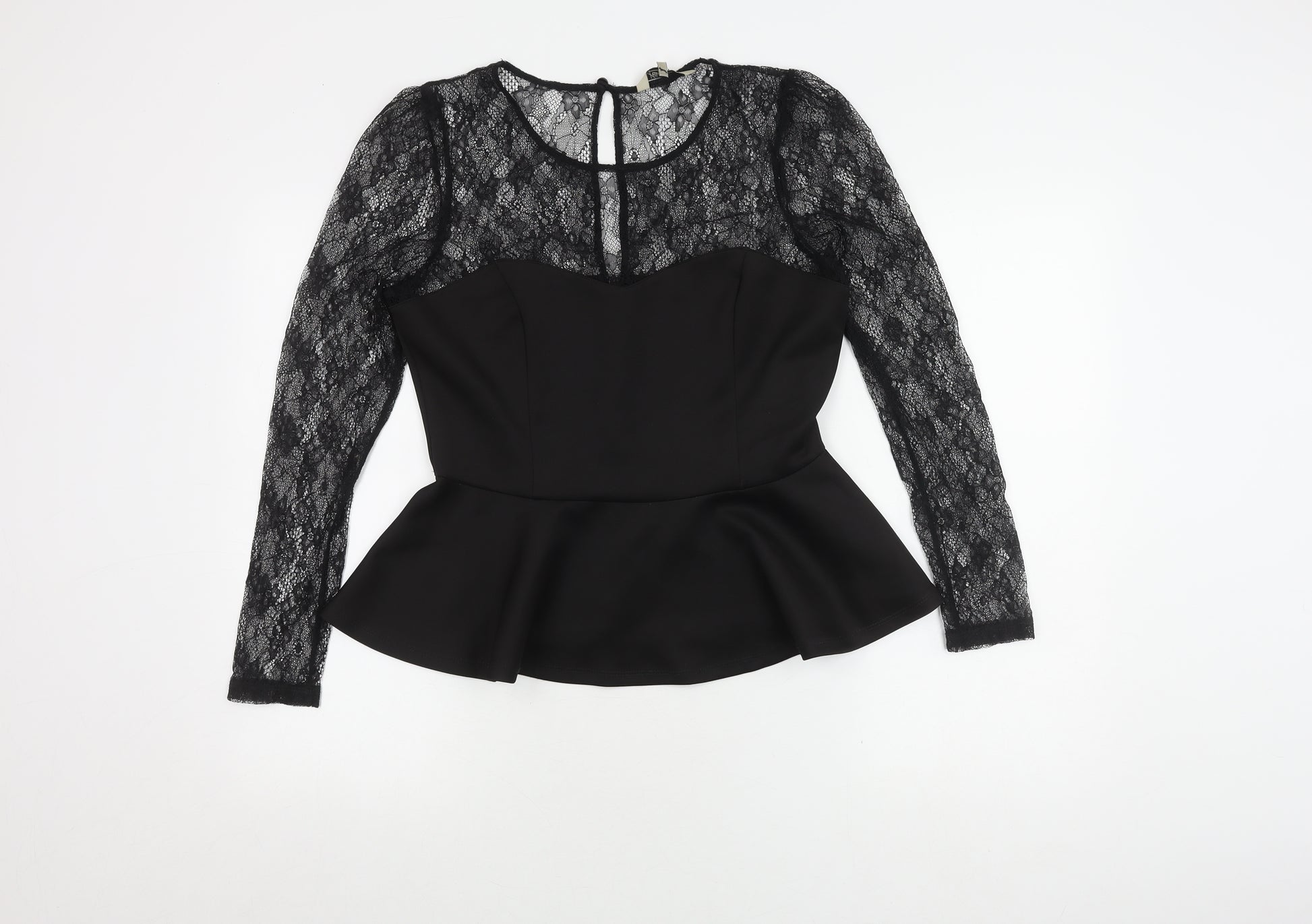 Miss Selfridge Womens Black Lace Long Sleeve Cotton Blouse Size 14