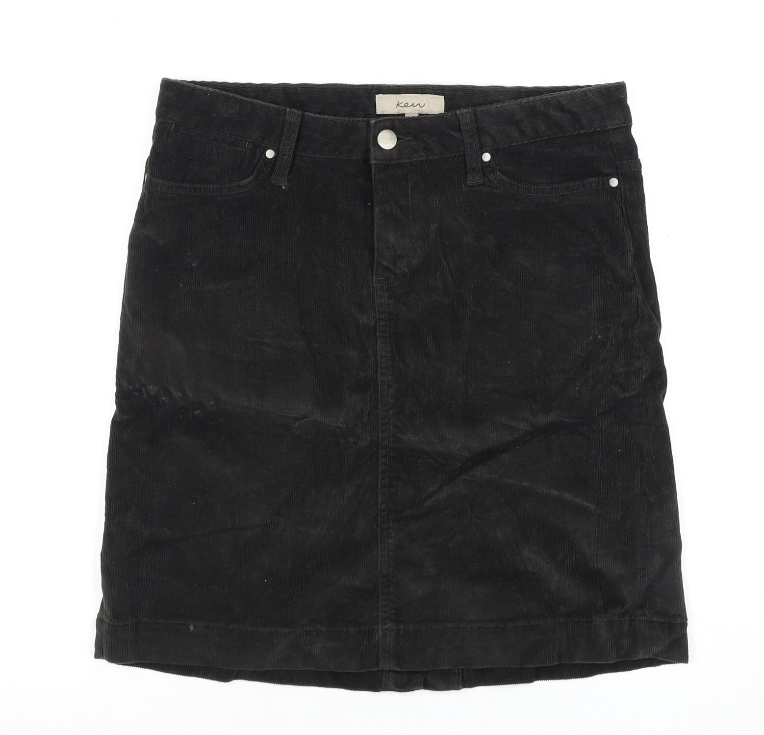Discover chic style with the Ken Women's Black Corduroy Pencil Skirt, a versatile addition to your wardrobe. Perfect for casual autumn and winter outings, this knee-length skirt combines comfort and style effortlessly. Crafted from a durable blend of 98% cotton and 2% elastane, its corduroy fabric provides a cosy fit and subtle stretch. Featuring a classic black colour, it pairs seamlessly with any top for an effortlessly elegant look. The button and zip closure ensure a secure fit, while practical pockets add functional charm. With a mid-rise design and simple straight style, it's ideal for any casual occasion. Machine washable for ease of care, this skirt boasts slight signs of wear, enhancing its casual appeal. Priced at £12.75, it's an affordable option for anyone keen on timeless fashion that doesn’t compromise on comfort. Upgrade your wardrobe and enjoy versatile styling with this stylish Ken pencil skirt.
