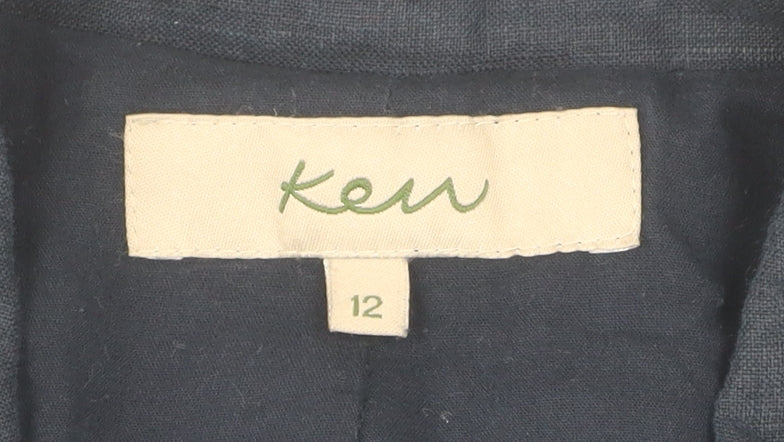Add a touch of sophistication and versatility to your wardrobe with this Women's Blue Linen Blazer from Ken. Designed for both casual and workwear settings, this blazer is the perfect choice for spring and summer days. The blazer is crafted from 100% linen, ensuring breathability and comfort throughout the day.The stylish single-breasted design features a notch lapel and a classic one-button closure, presenting a smart and polished look. Its regular fit and regular-length cut make it a flattering addition to any outfit. The blazer's long sleeves are detailed with a three-button cuff, adding a touch of elegance to the overall design.Inside, the blazer is lined with a blend of cotton and viscose, which enhances the overall comfort and durability. The beautiful blue hue complements various styles, making it a must-have staple piece suitable for multiple occasions ranging from work-related events to casual outings.Despite being slightly wrinkled, this blazer remains in excellent condition, promising reliability and style. Whether you're dressing up a pair of jeans or layering over a dress, this versatile blazer will quickly become a go-to garment in your collection.