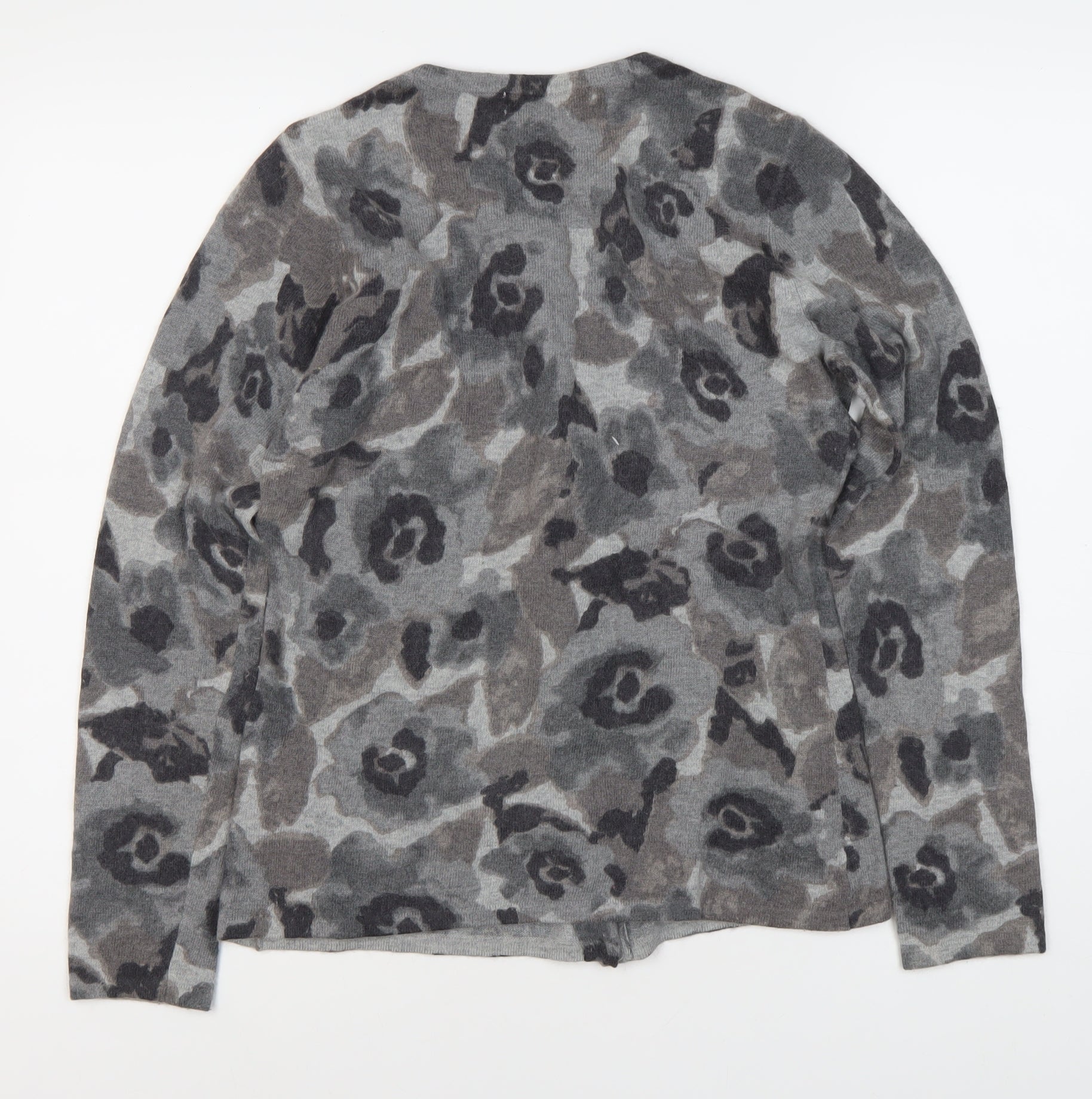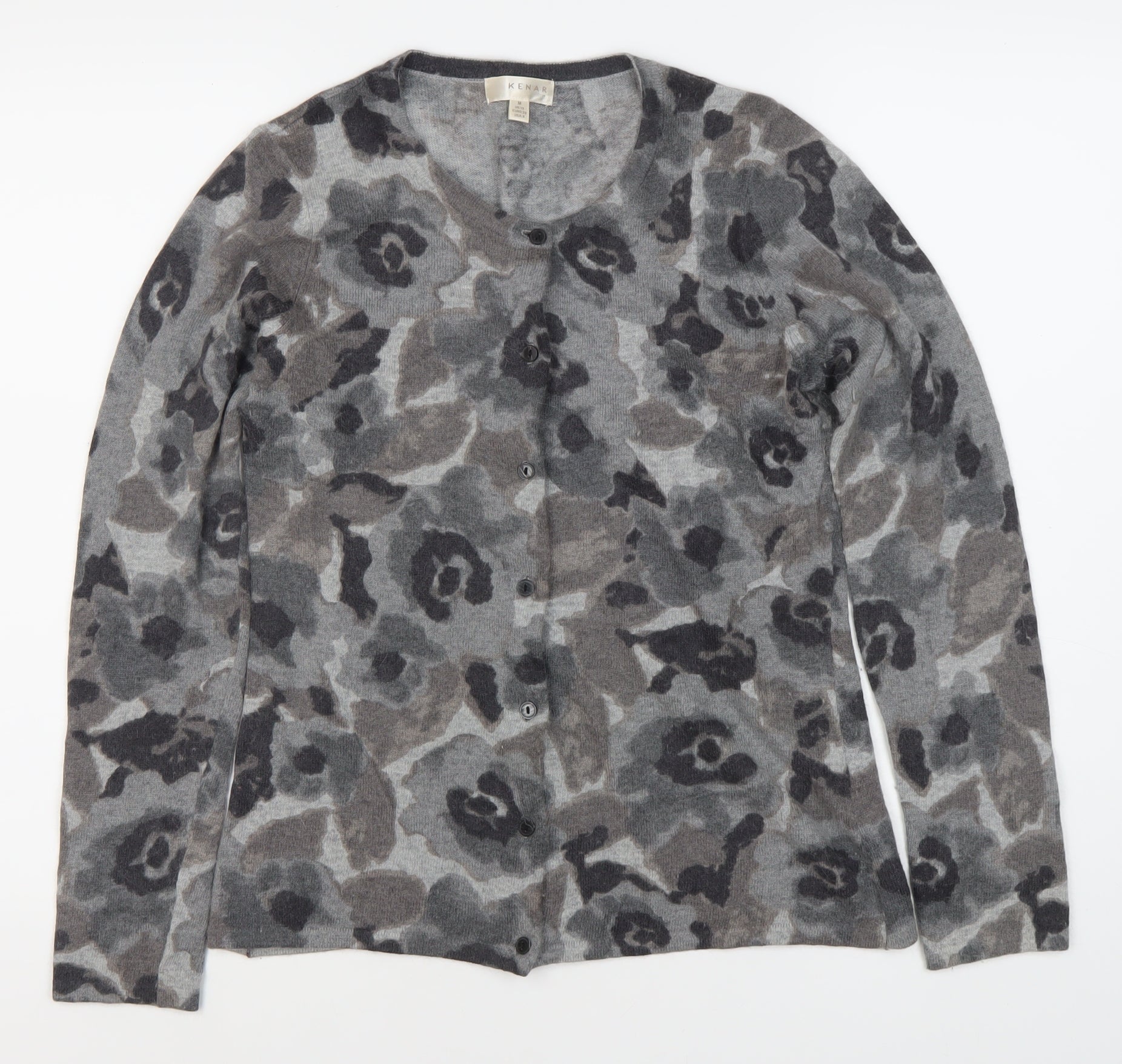 KENAR Women's Grey Floral Cardigan M, Long Sleeve, Button Accents