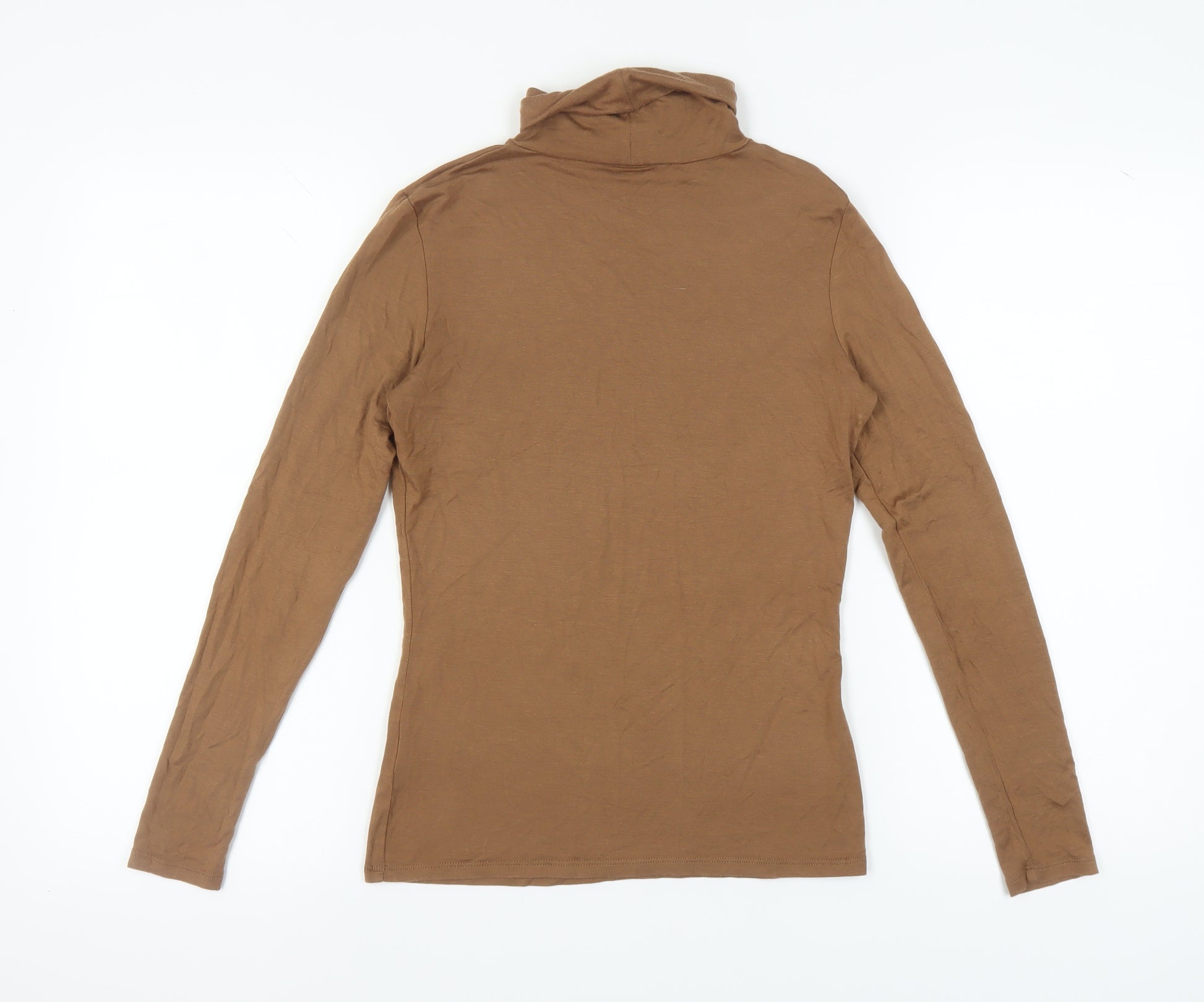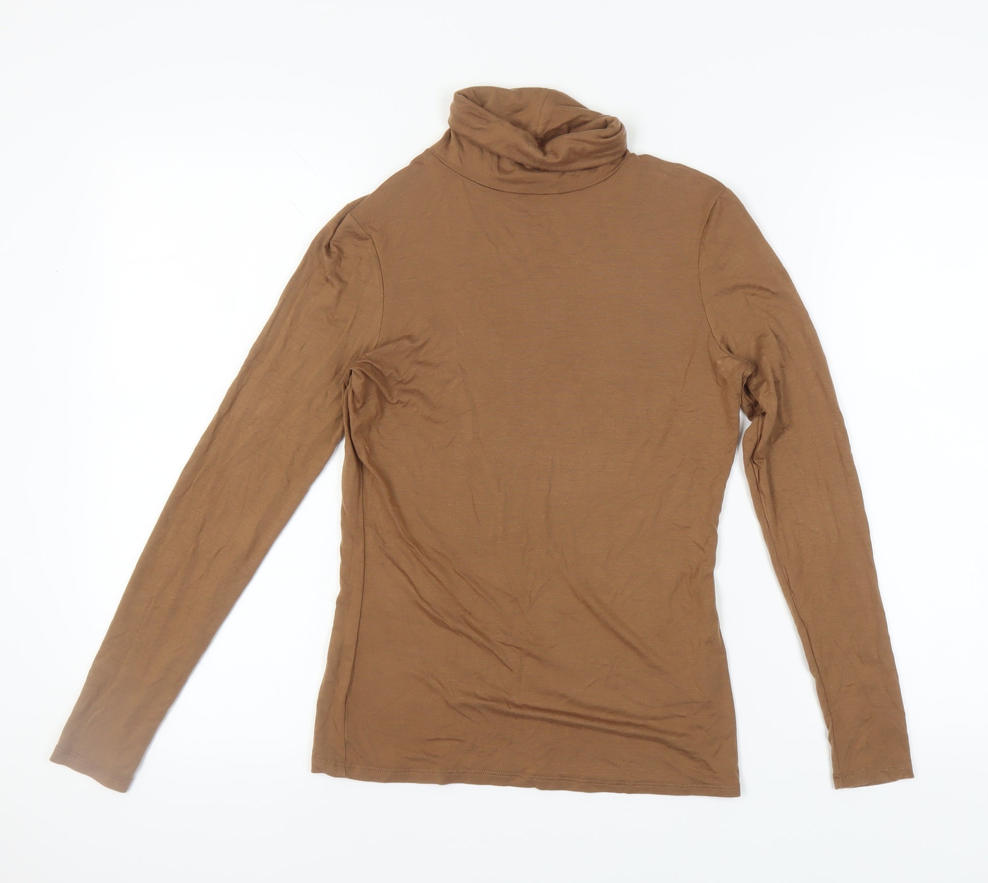 Discover effortless style with this Kettlewell Women's Roll Neck Top, crafted in a versatile brown hue that adds a touch of sophistication to any wardrobe. Designed for women who appreciate both comfort and fashion, this top features a classic roll neck that is not only practical for cooler temperatures but also provides a chic, polished look. The long sleeves offer full coverage, while the regular fit ensures a flattering silhouette that gently skims the body without feeling restrictive. Although the top showcases a slightly worn appearance, it remains in excellent condition, ready to become a staple in your seasonal wardrobe. Perfect for layering under blazers or cardigans, or wearing on its own for a more laid-back vibe. Elevate your ensemble whether heading to the office or enjoying a casual day out. Wear it with tailored trousers for a business meeting or pair it with jeans for a relaxed outing; this top's solid colour makes it effortlessly adaptable to various occasions. Essential for those who favour understated elegance, this roll neck top seamlessly combines style and practicality.