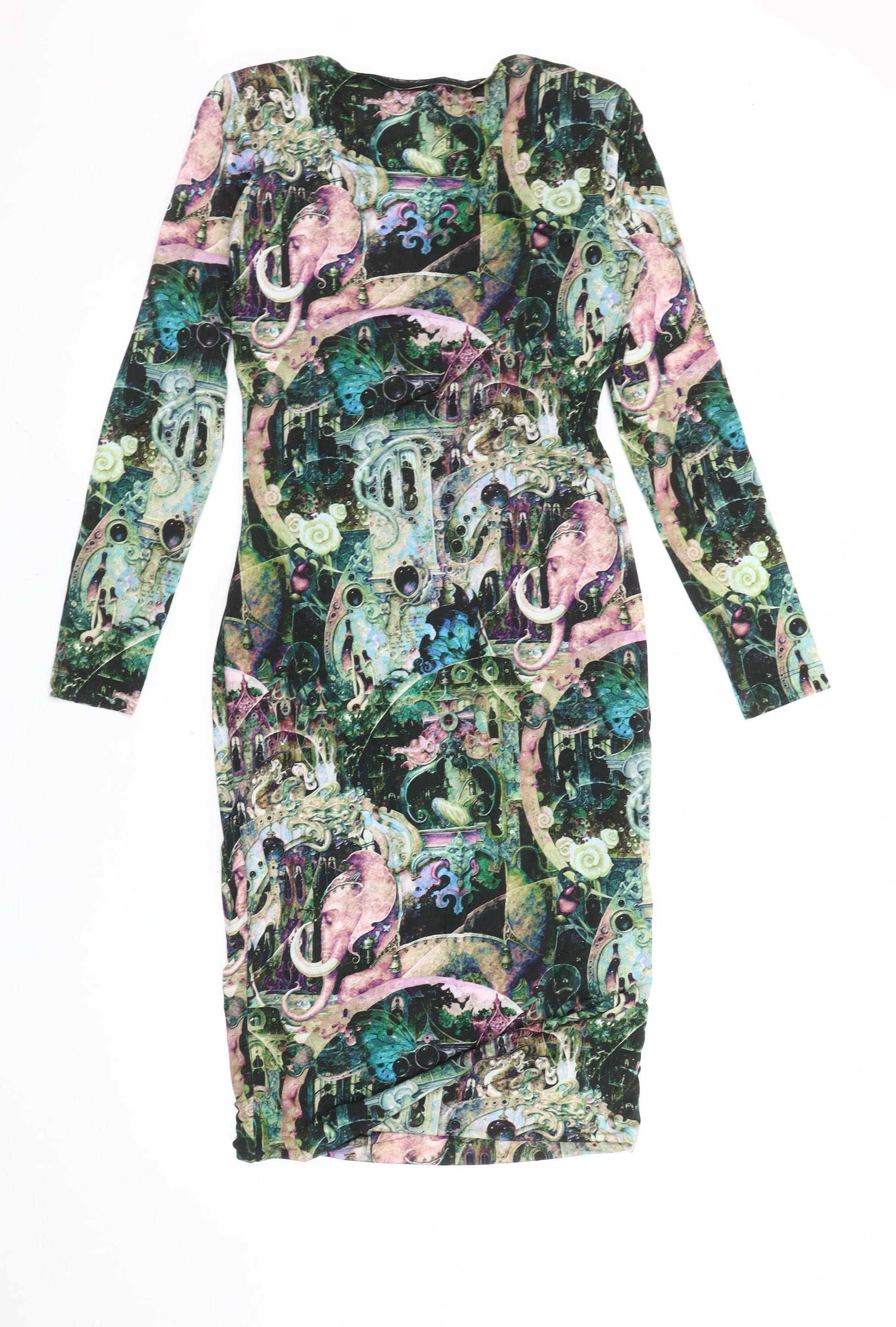 Women's Multicoloured Bodycon Viscose Stretch Dress Size 8