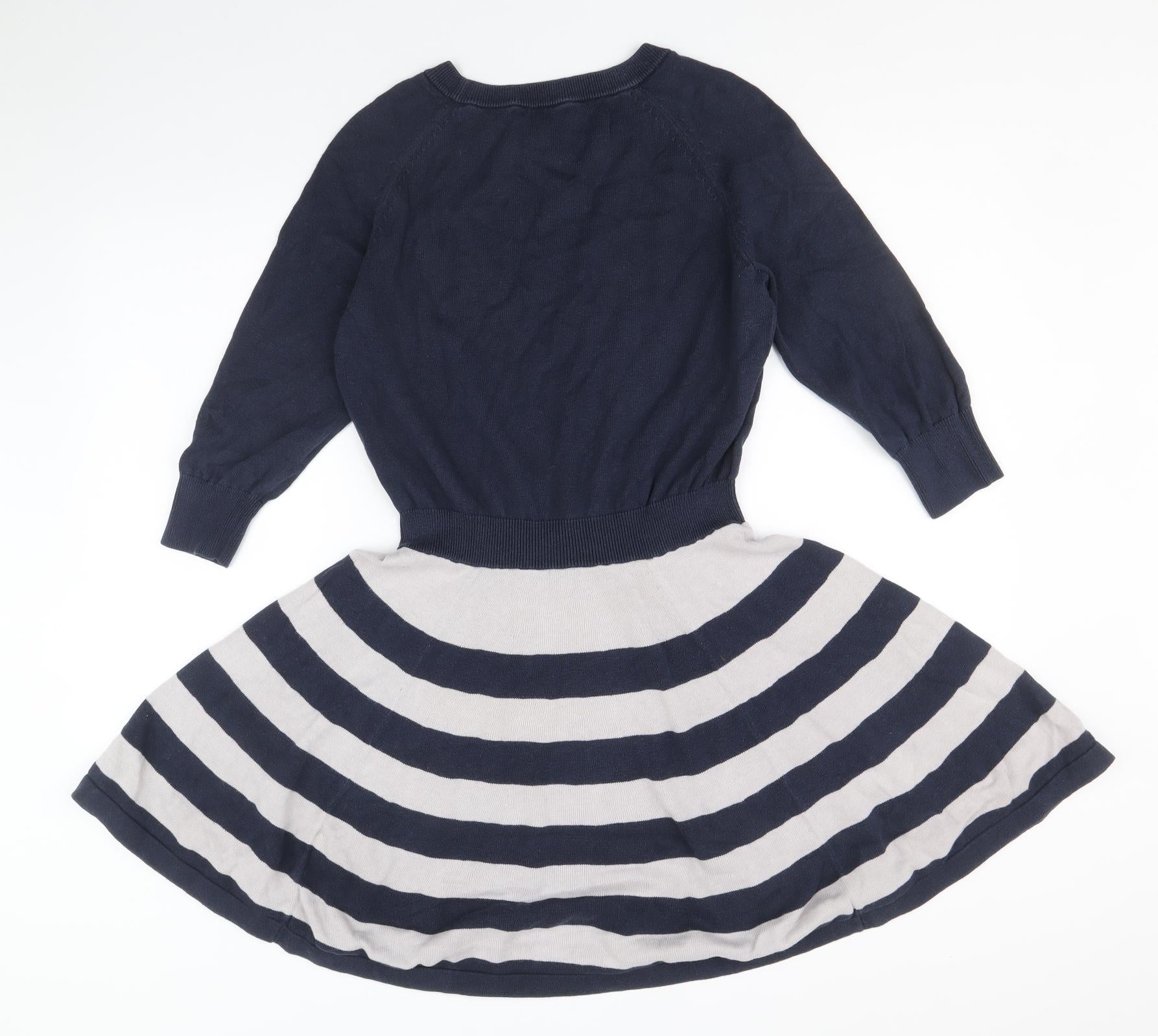 Womens Blue Striped Acrylic Jumper Dress Size M Round Neck Pullover