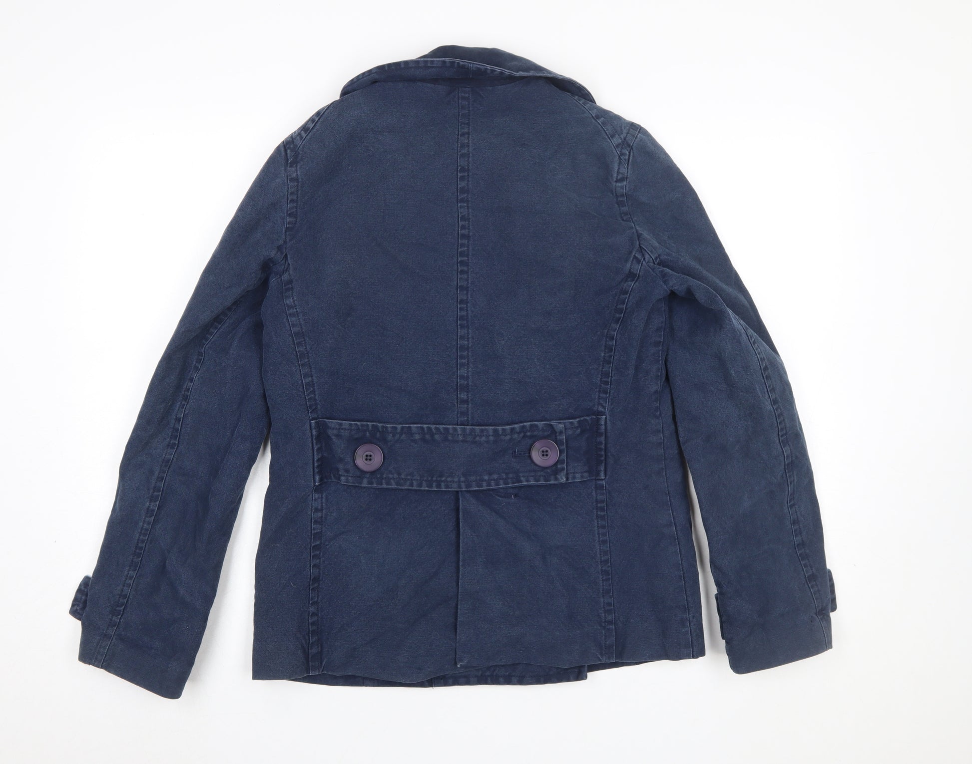 Kew Women's Blue Cotton Pea Coat Jacket Size 8 Button Front