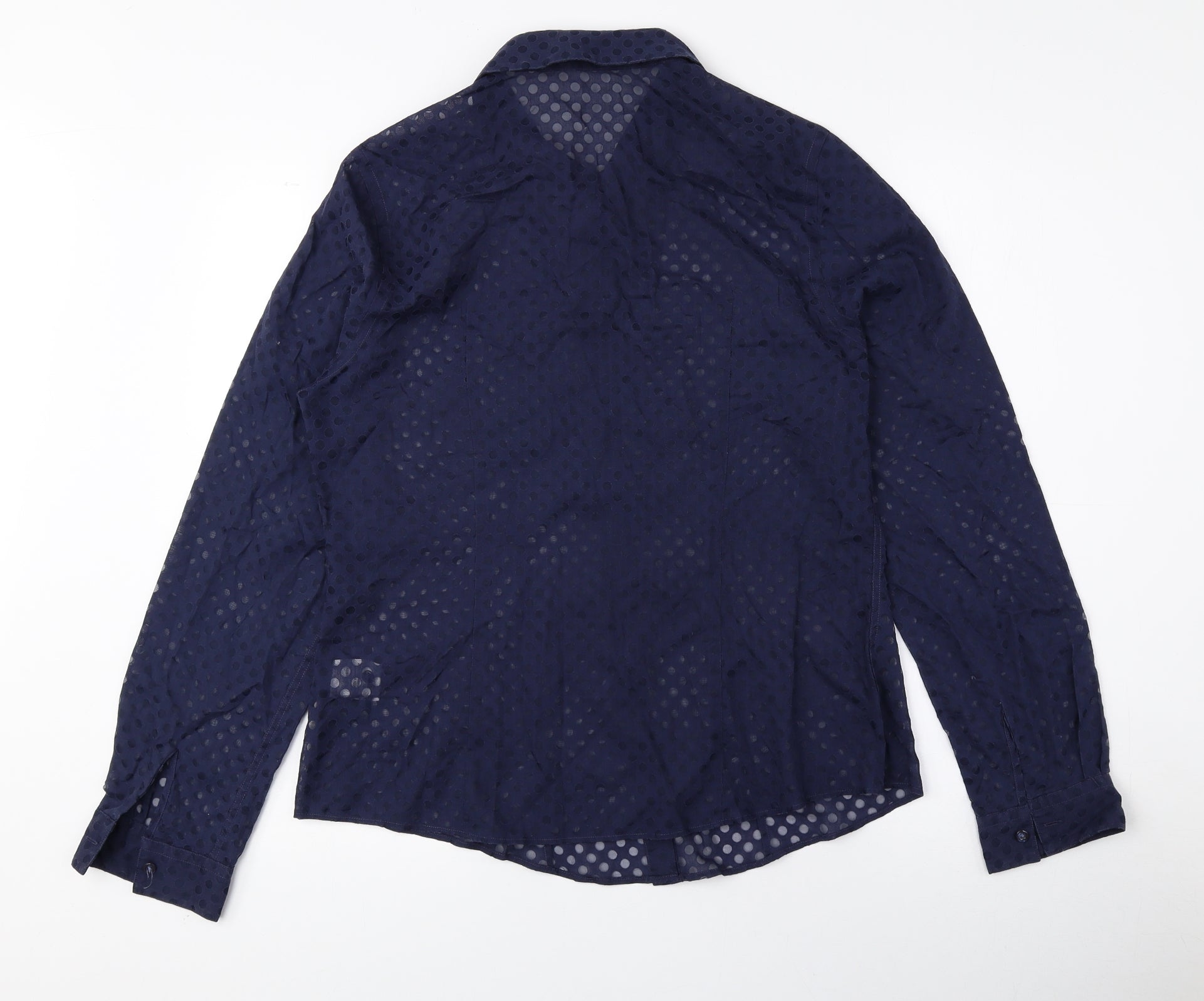 Womens Blue Polka Dot Cotton Basic Button-Up Size 14 Collared
