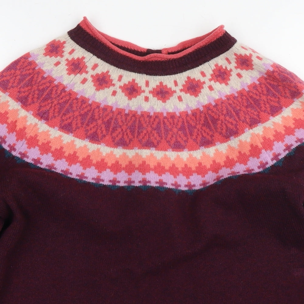 Womens Purple Round Neck Fair Isle Wool Pullover Jumper Size 14