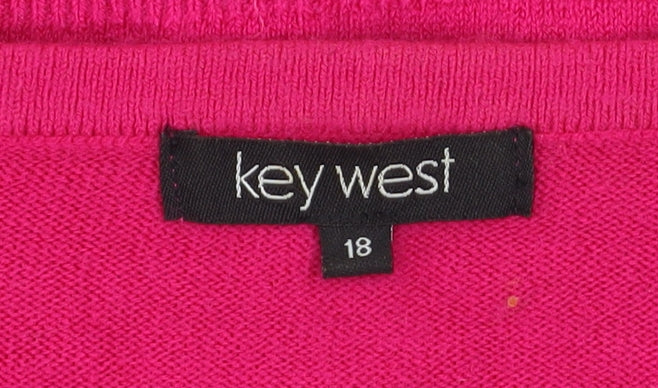 This Key West women’s pink cardigan is a vibrant and versatile piece perfect for any wardrobe. Designed in a comfortable regular fit, it features a flattering crew neckline and long sleeves that make it ideal for layering throughout the seasons. Its vivid pink colour brings a lively touch to everyday outfits, offering an easy way to add brightness and energy to your look. Crafted from 100% acrylic, the knit construction provides softness and durability while remaining lightweight, making it suitable for all-day wear during cooler months or breezy evenings. The cardigan fastens with a row of matching pink buttons down the front, creating a classic and timeless silhouette that works well for both casual and semi-formal occasions. It’s designed for effortless pairing with jeans, skirts, or dresses, making it a versatile go-to in your collection. Ribbed edges at the cuffs and hem give the garment structure and shape retention, ensuring it maintains its polished appearance after wear and wash. Its practical machine-washable fabric means easy care and long-lasting wearability. Condition-wise, this cardigan is in excellent pre-loved condition, showing minimal signs of prior use and no visible damage. It’s perfect for everyday layering without compromising on style. Suitable for casual outings, light workwear layering, or weekend comfort, it transitions seamlessly across autumn, spring, and winter wardrobes. Ideal for anyone seeking a stylish yet practical addition to their knitwear rotation, this Key West cardigan combines contemporary comfort with timeless appeal. Whether you’re dressing for a relaxed day out, running errands, or adding a cosy layer to your smart-casual ensemble, its bright and cheerful finish will lift your look instantly. With its blend of colour, comfort, and quality, it’s a must-have item for any woman who loves classic knitwear with a modern twist.