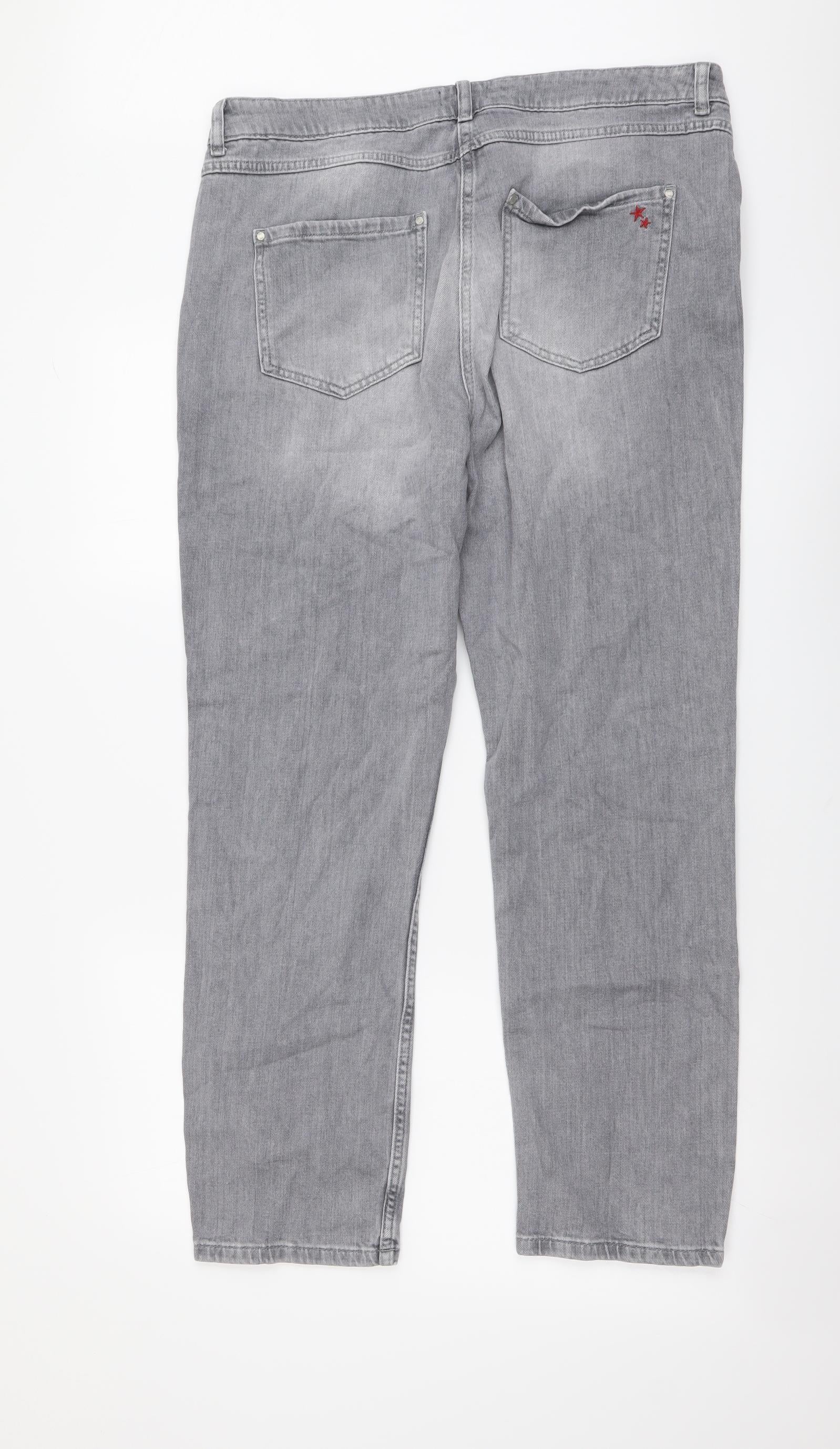 Womens Grey Cotton Straight Jeans Size 16 L28 in Regular Button