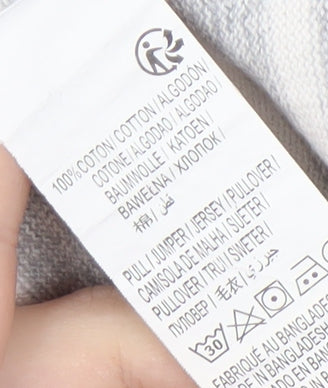 Enhance your child's wardrobe with this stylish KIABI boys pullover jumper, designed in a contemporary grey striped pattern. Perfect for the colder seasons, this jumper is crafted from 100% cotton providing exceptional comfort and warmth. The tight-knit jersey fabric ensures durability, while the crew neck and long sleeves add a classic touch to any outfit. Ideal for casual occasions, this regular fit jumper pairs well with jeans or trousers, making it a versatile addition to your child's collection. Enjoy peace of mind with its machine washable feature, offering easy care and maintenance. Though in excellent condition, please note there are no original sales tags. Available in size 10 Years, this lightweight pullover makes a perfect choice for the autumn and winter months, whether heading to school or enjoying outdoor activities. Grab this quality, value-for-money jumper today and keep your little one warm and stylish this season.