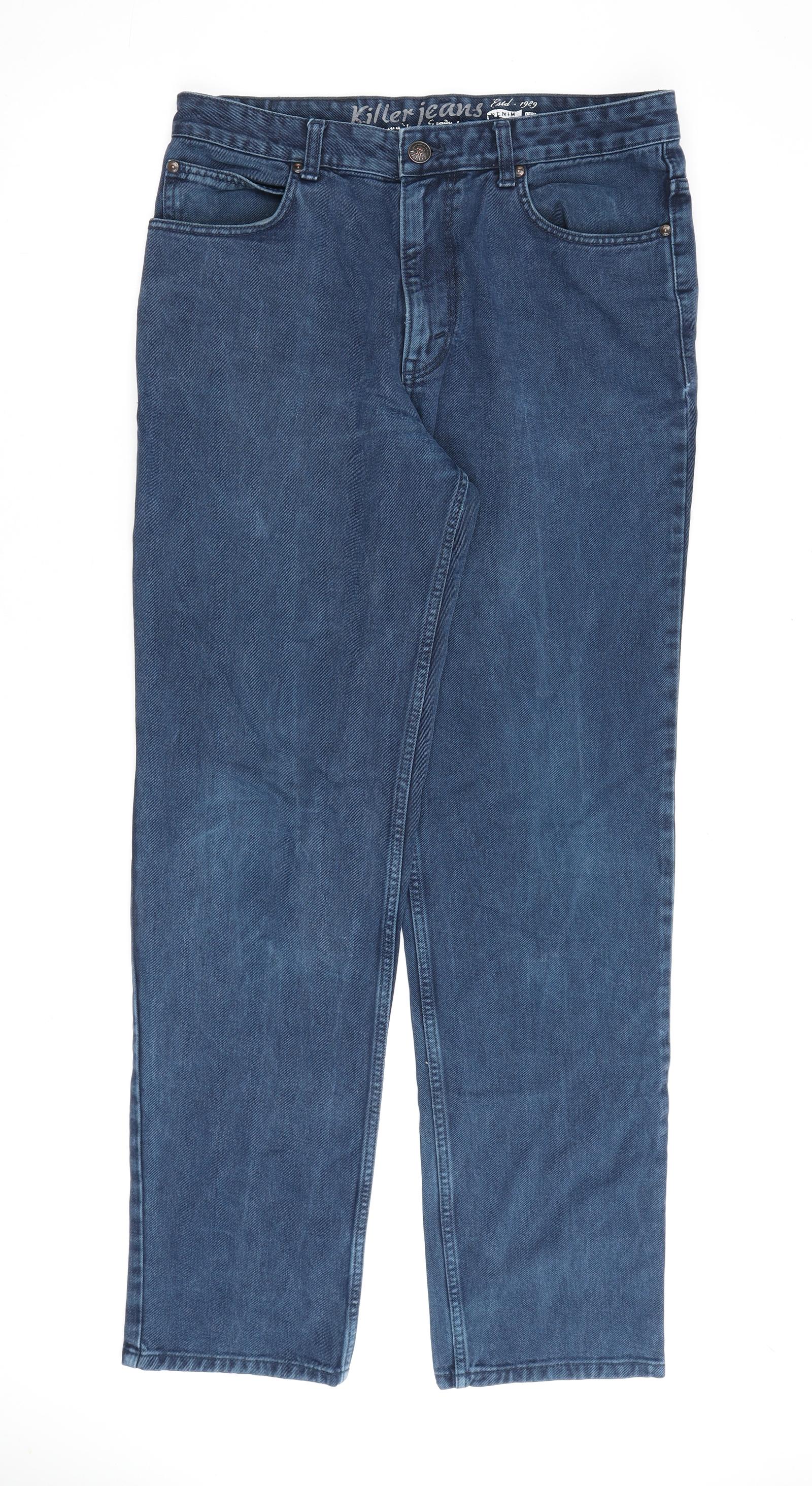 Mens Blue Cotton Straight Jeans Size 36 in L34 in Regular Zip
