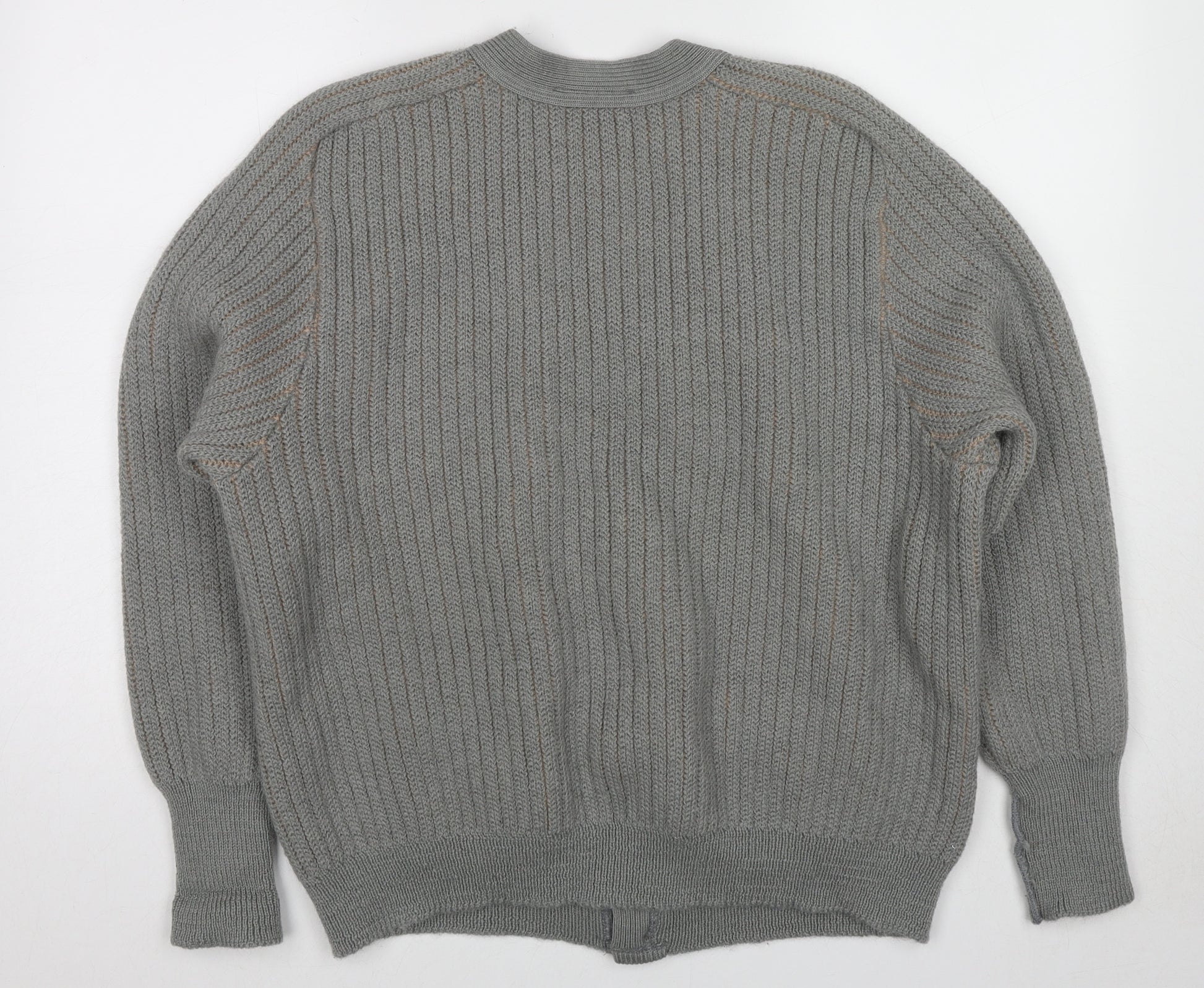 Womens Grey V-Neck Wool Cardigan Jumper Size 2XL