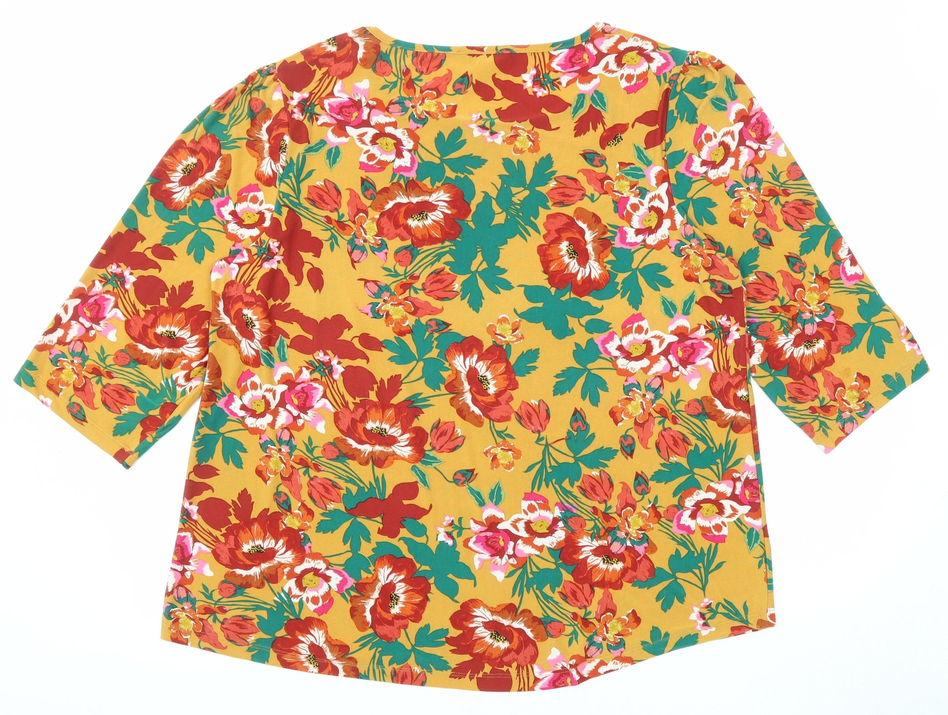 Womens Multicoloured Floral Polyester Basic T-Shirt Size 2XL Round Neck