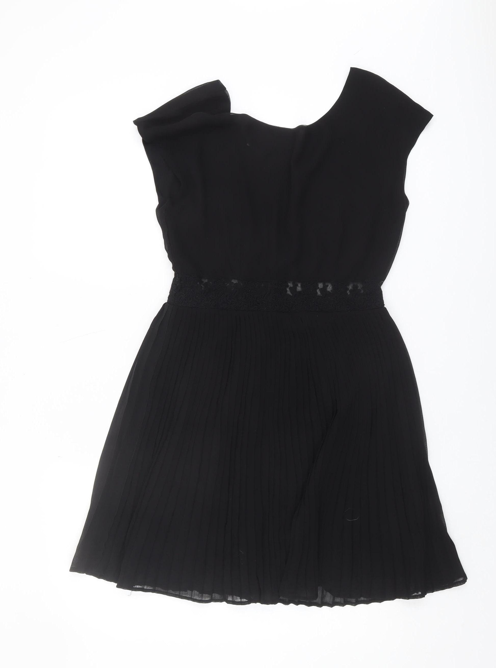 Zara Womens Black Polyester Slip Dress Size M Square Neck Zip