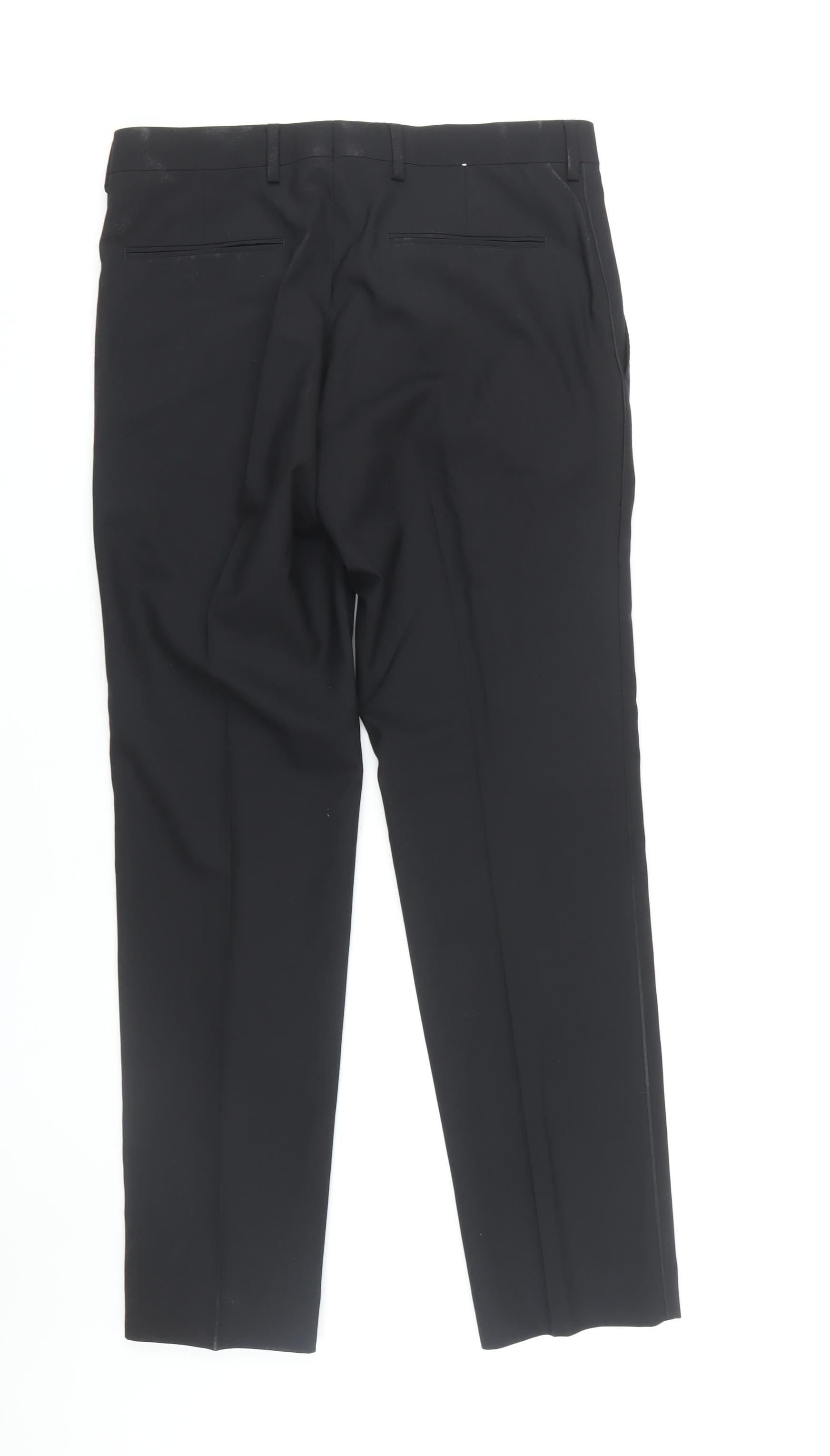 Step out in style with these elegant Kin by John Lewis trousers, a perfect addition to any modern wardrobe. Expertly crafted for the discerning gentleman, these trousers blend functionality with a touch of sophistication. Made from a premier mix of 51% wool and 49% polyester, the fabric ensures durability while exuding a refined finish perfect for business and formal occasions. The classic black shade adds a layer of versatility, making them an essential piece for styling with any shirt or blazer.Designed for a regular fit, these trousers ensure comfort without compromising on style. The flat front and straight leg style deliver a clean and streamlined look, making them a contemporary choice for the fashion-forward man. With a mid-rise waist and a secure zip closure, they provide ease of wear, suitable for any setting from the boardroom to a formal evening out.Featuring practical slash pockets, these trousers offer functionality while maintaining a sleek silhouette. Though dry clean only, the luxurious texture and detailed craftsmanship make it worth the extra care. Ideal for the cooler months, these trousers can be paired with a warm coat or tailored jacket for an outstanding ensemble.Invest in these Kin by John Lewis trousers to elevate your wardrobe staples. Whether you're heading to an office meeting or attending an evening gala, these trousers will ensure you remain stylishly ahead.
