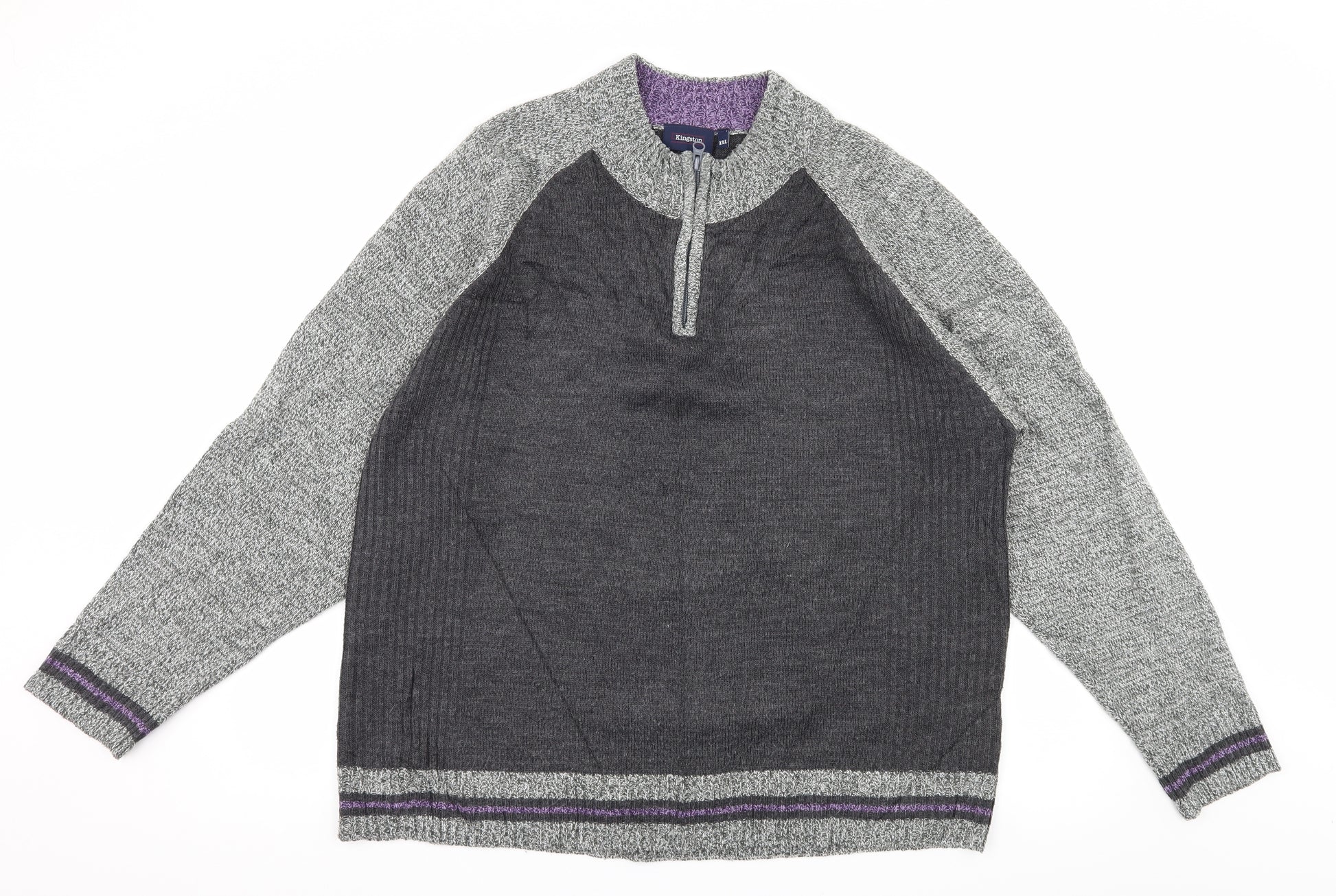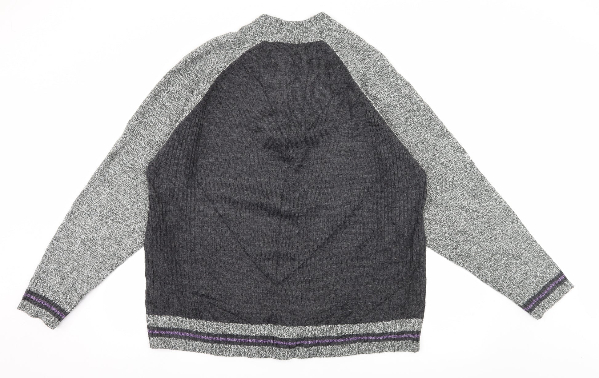 Mens Grey Striped Knit Pullover Jumper Size 2XL