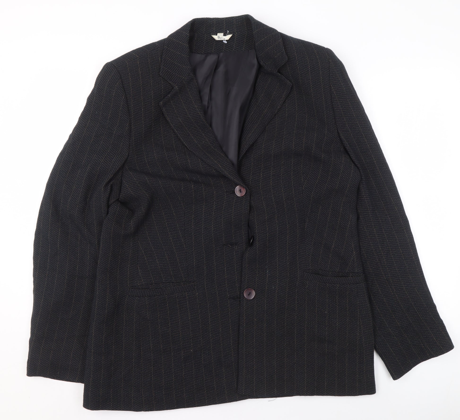 Women Black Pinstripe Blazer Size 16 Regular Fit Jacket