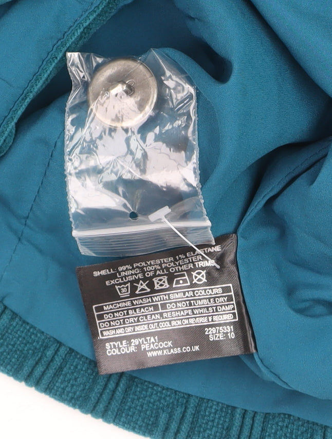 Upgrade your wardrobe with this beautifully crafted Klass Women’s Blazer in a rich peacock blue tone. Designed with a timeless silhouette, this jacket embodies modern sophistication while maintaining everyday versatility. The textured knit fabric provides a flattering structure, while the mid-length cut ensures an elegant fit for multiple occasions. Perfect for business meetings, casual outings, or evenings out, its refined yet comfortable design makes it a practical and stylish choice all year round. Constructed from a durable polyester and elastane blend, the material ensures comfort, flexibility, and easy maintenance. The blazer is fully lined with soft polyester, enhancing both comfort and structure. Two decorative front buttons and subtle front pockets add functionality and detail. Ideal for layering, it works beautifully over blouses, dresses, or trousers, easily taking you from day to night. The rich blue hue, referred to by the brand as 'Peacock', offers a striking, flattering colour suitable for all seasons, especially spring and autumn. Its simple, classic design is elevated by understated texture and meticulous tailoring, making it a standout piece in any wardrobe. This blazer exudes sophistication while allowing effortless movement and breathability. Brand new and complete with tags attached, this Klass blazer shows no signs of wear or defects. A modern staple for any stylish woman, it pairs seamlessly with neutral tones, denim, or prints for a chic, coordinated look. Versatile, comfortable, and carefully designed, this blazer captures both quality and timeless appeal — perfect for workwear or smart-casual occasions. A must-have for anyone seeking affordable elegance that transitions effortlessly from office wear to evening style.