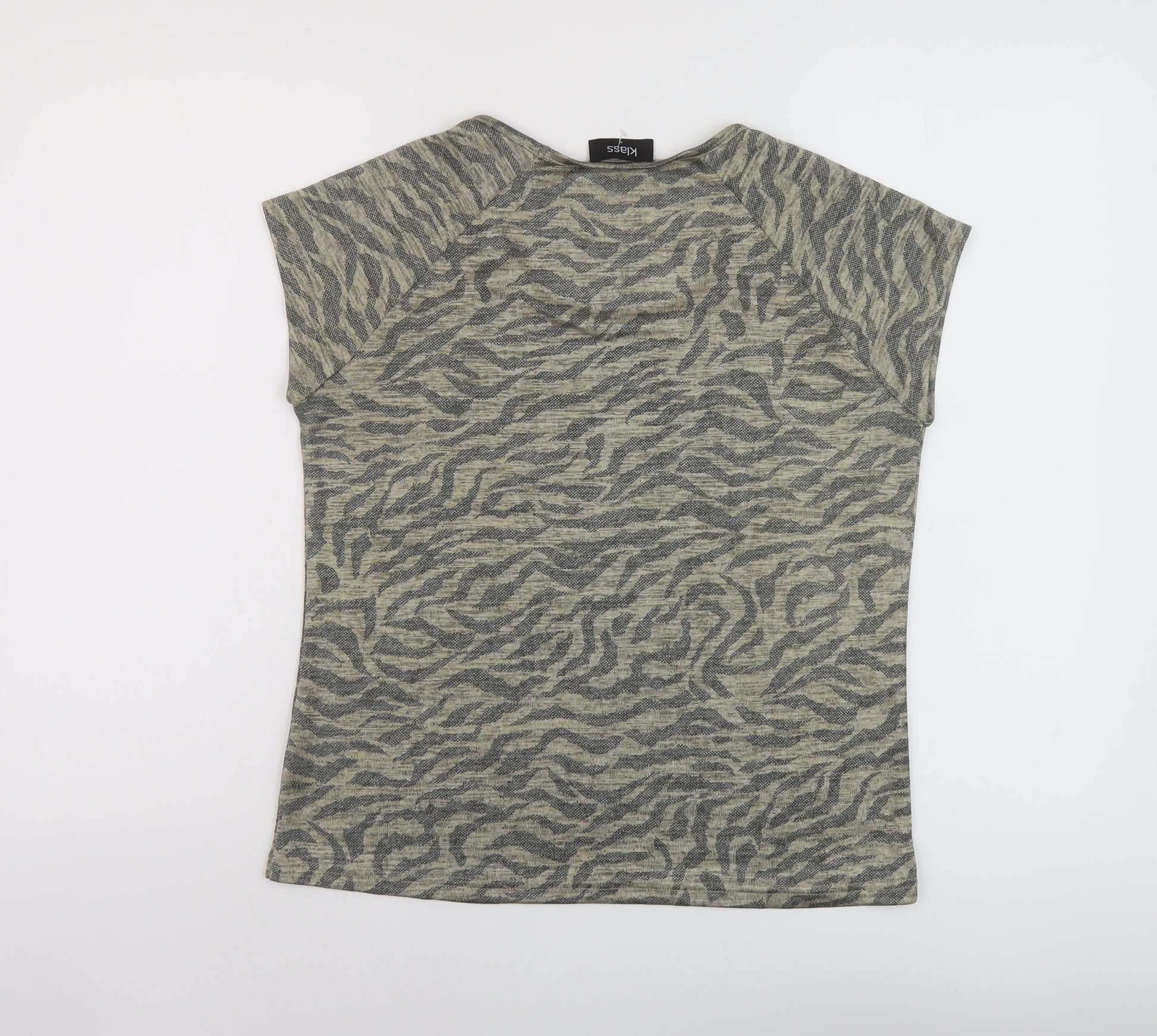 Womens Beige Animal Print Polyester Basic T-Shirt Size M Round Neck