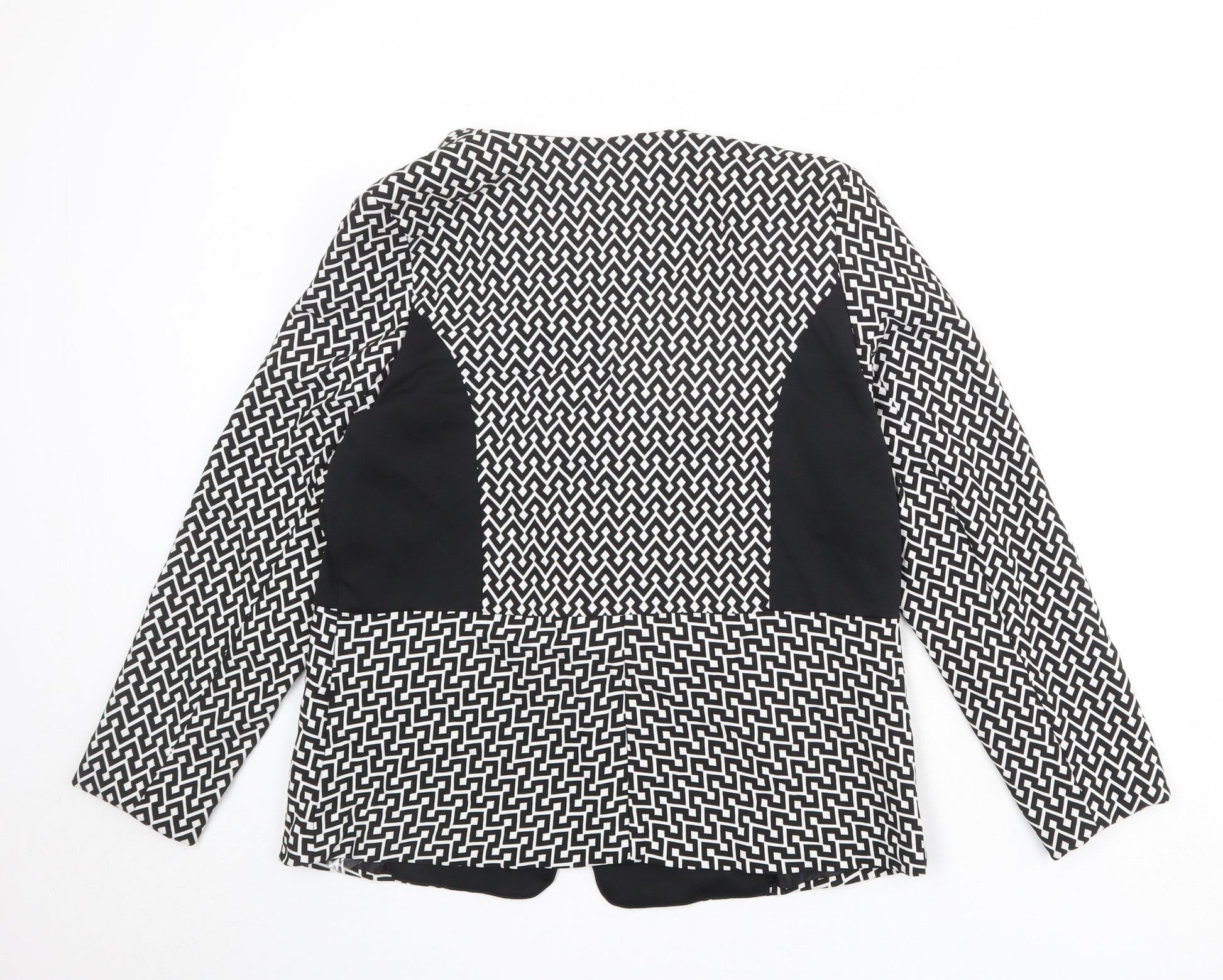 Womens Black Geometric Jacket Blazer Size 14 Button