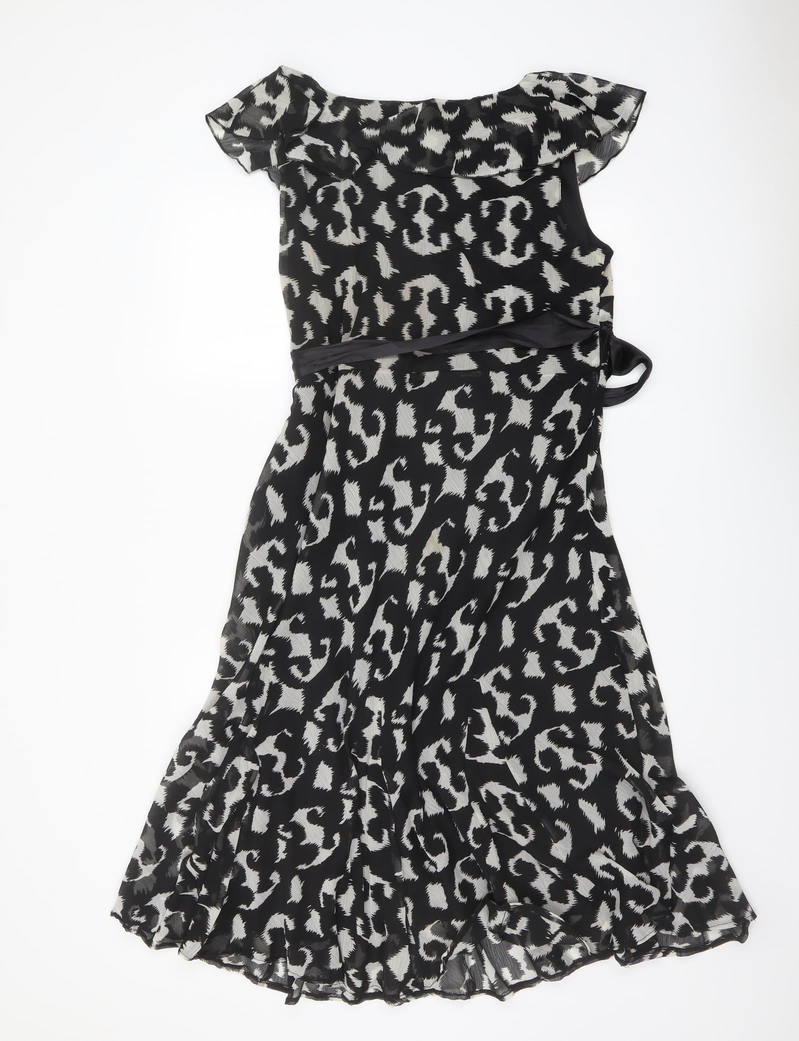 Womens Black Geometric Polyester A-Line Size 14 Round Neck Pullover - Belted