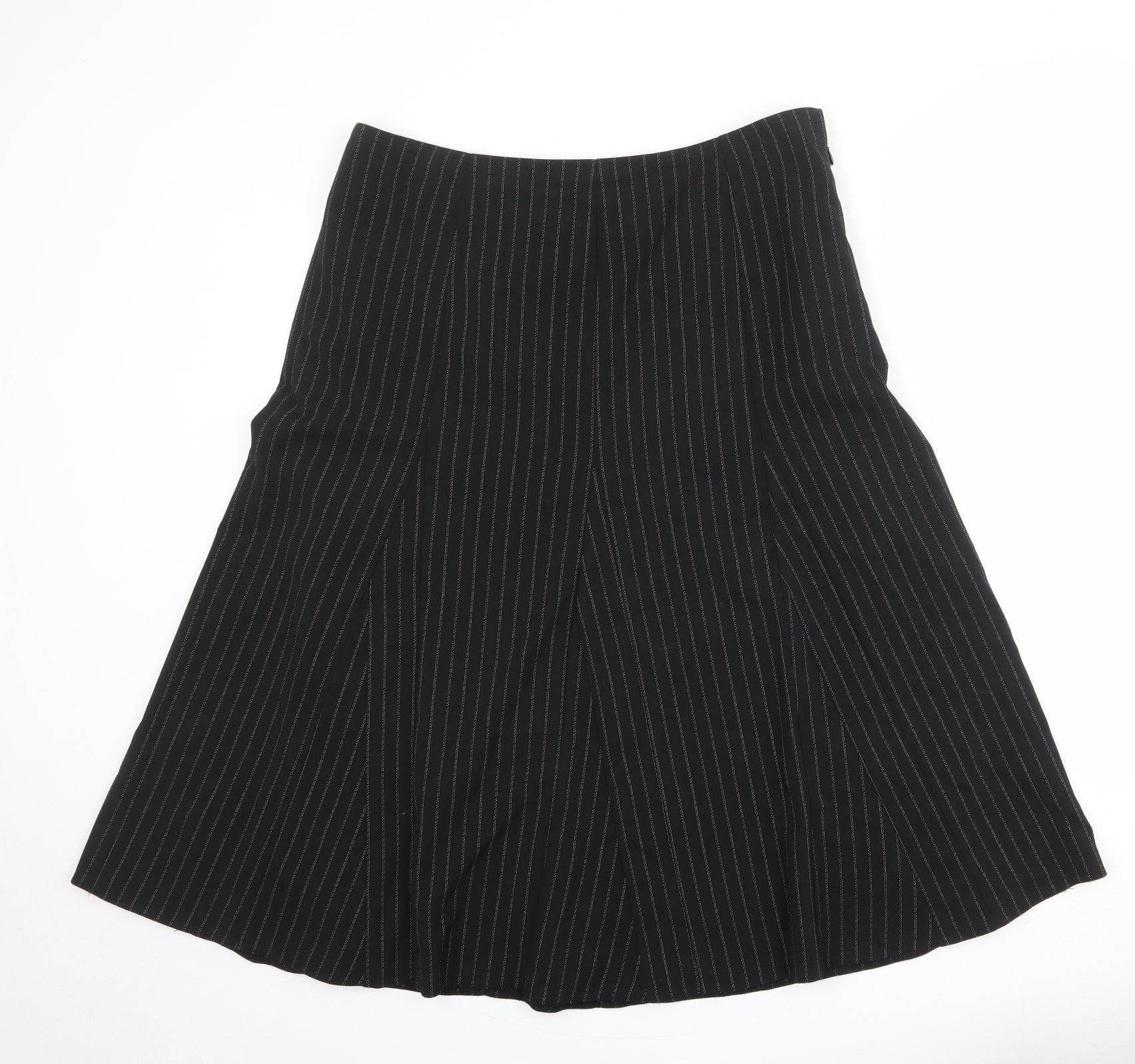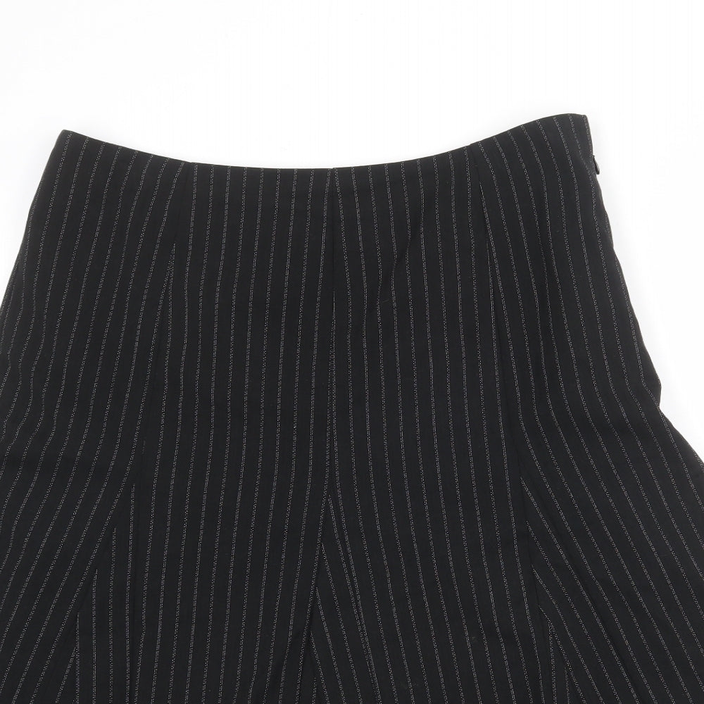 Womens Black Striped Polyester Swing Skirt Size 16 Zip