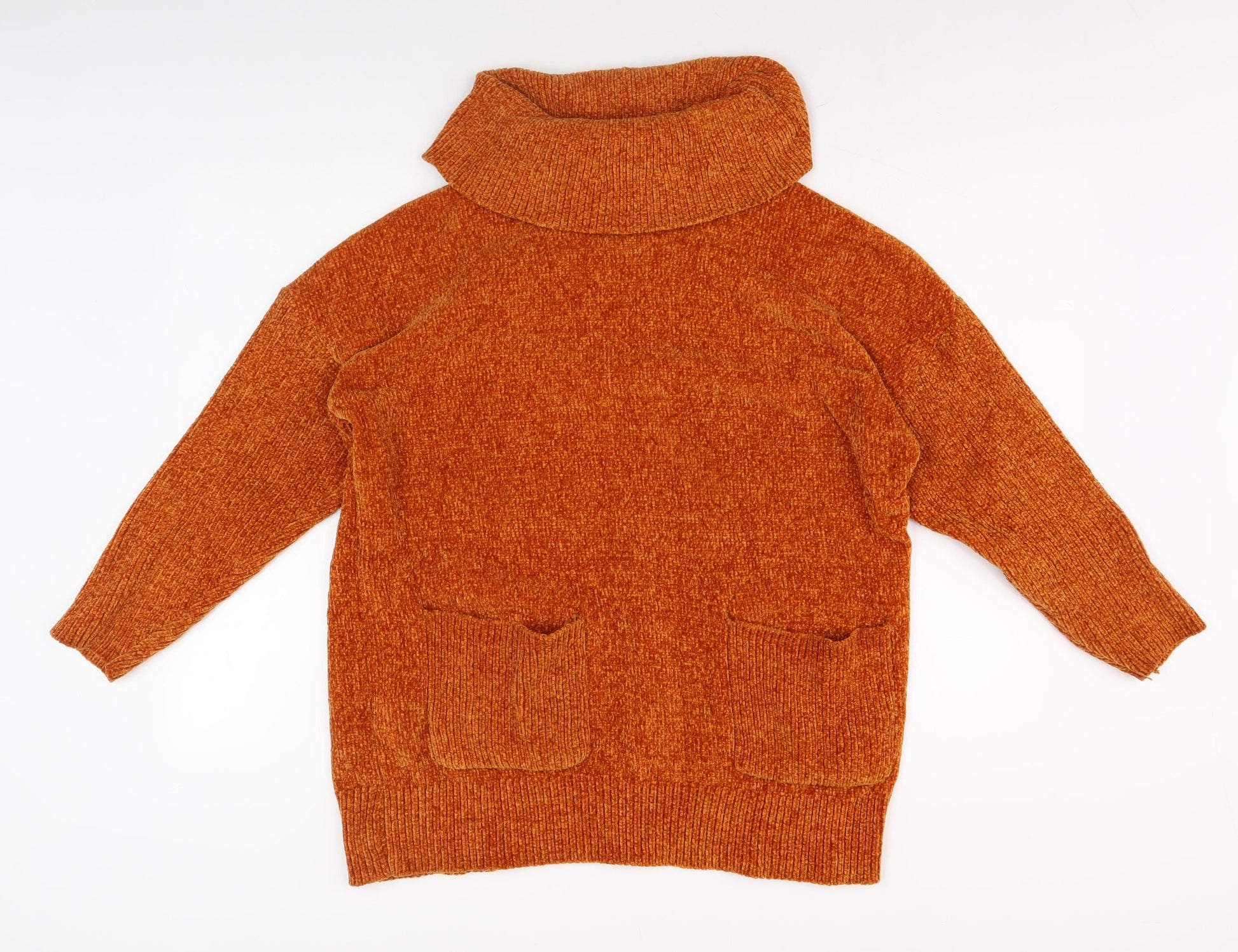 Embrace cosy comfort with this Women's Orange Pullover Jumper by Klass. Perfect for autumn and winter layering, it features a chic roll neck and functional pockets, ensuring both style and utility. Made from plush knit polyester, this jumper provides warmth and comfort for casual outings. Its vibrant orange hue makes it an energising addition to your wardrobe. With easy hand wash care, this jumper is a practical choice for everyday wear, making it a versatile piece for any woman seeking both fashion and functionality.