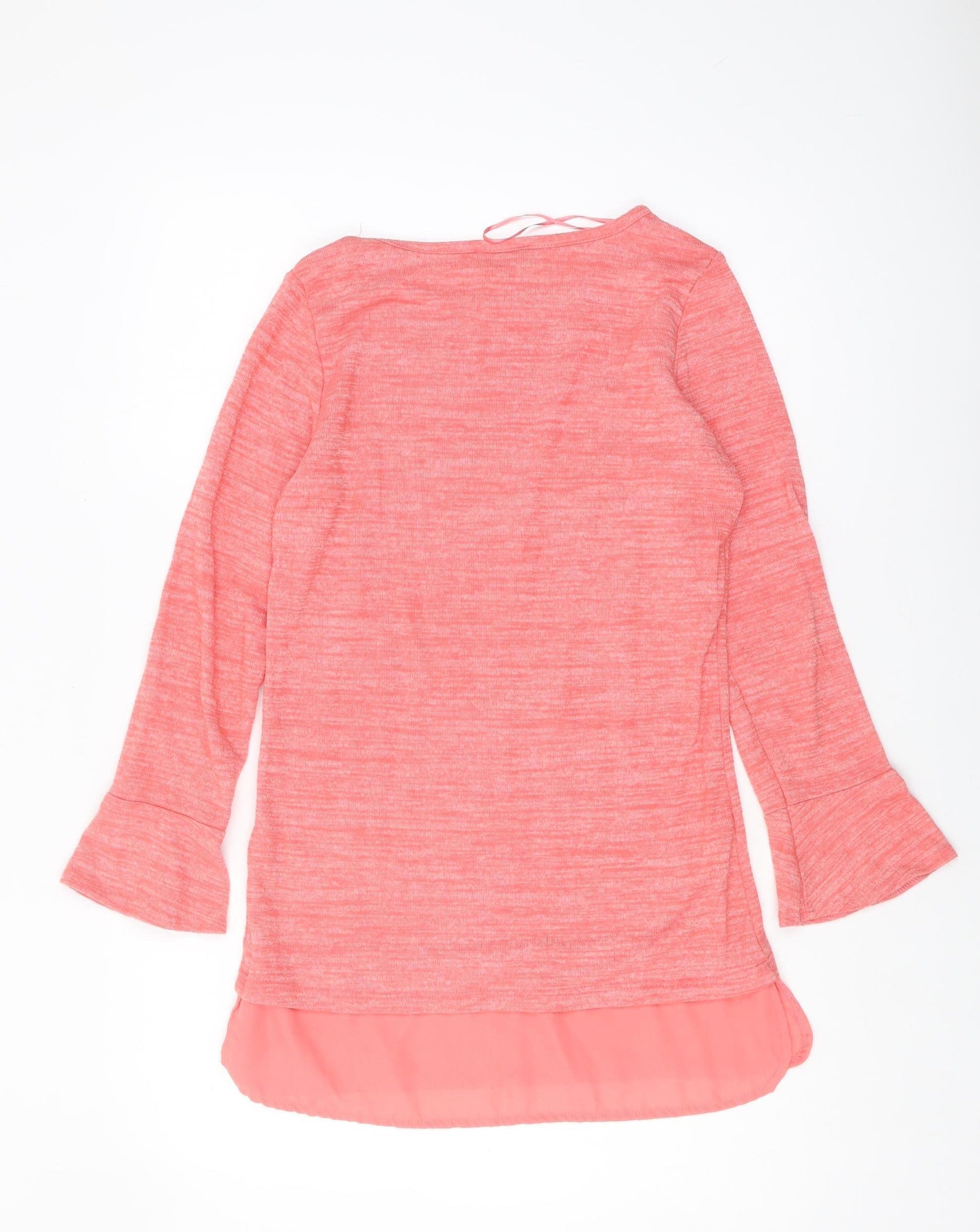 Elevate your casual wardrobe with this elegant pink tunic blouse from Klass. This stylish top features a flattering 3/4 flared sleeve design and a comfortable boat neckline, perfect for those warm spring and summer days. Crafted from a luxurious blend of viscose, elastane, and polyester, the blouse offers a soft and lightweight feel. Its solid pink hue adds a vibrant touch to your ensemble, making it an ideal choice for casual occasions. Pair this versatile piece with your favourite jeans or skirts for a chic, effortless look. In excellent condition with no visible defects, it's a must-have addition for fashion-forward women.