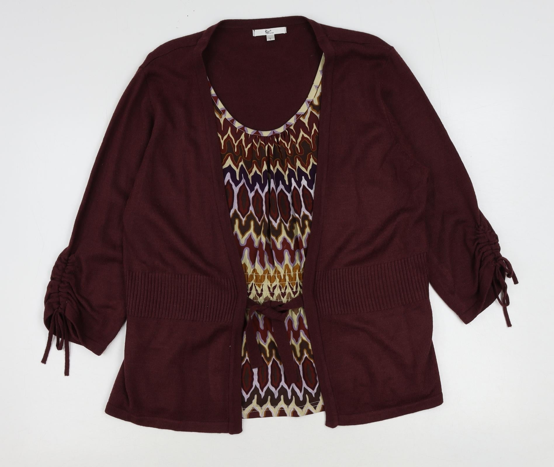 Womens Red Acrylic Basic Blouse Size L Scoop Neck - Cardigan Effect