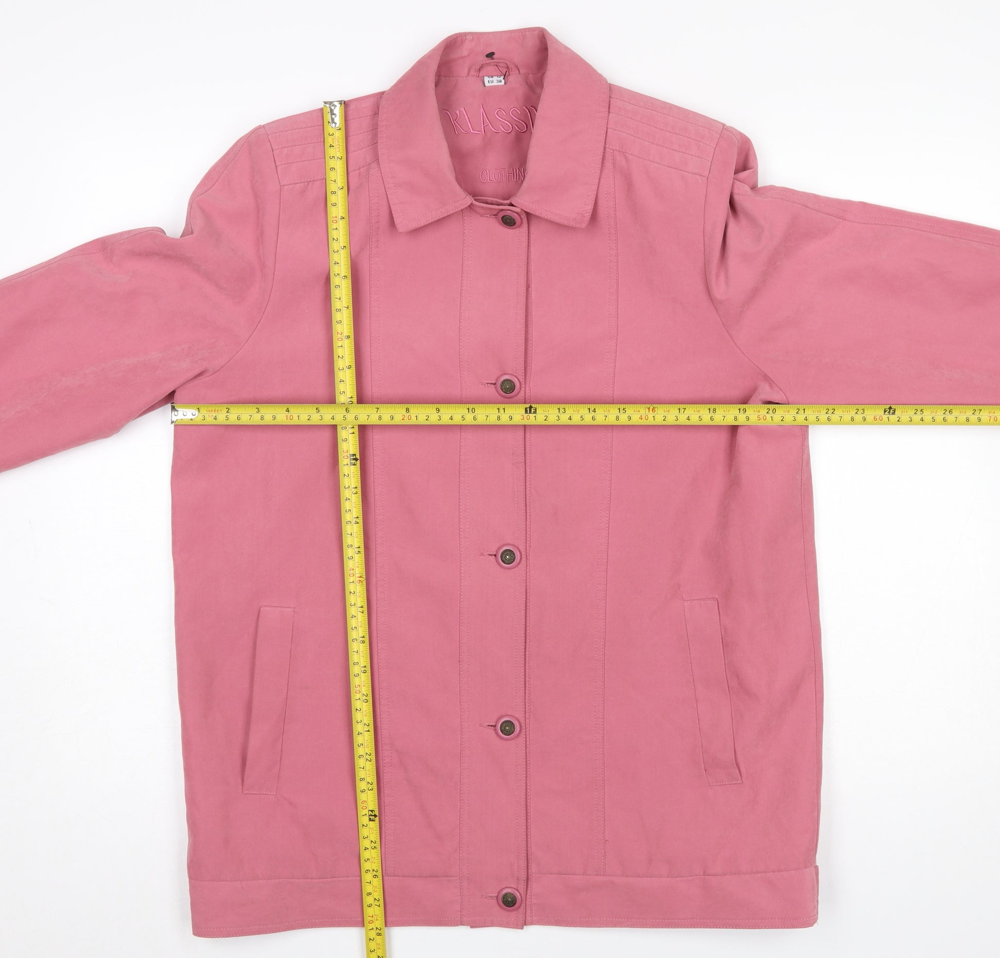 Add a touch of understated elegance to your everyday outerwear with this soft pink mid-length coat from Klassik Clothing. Designed with a classic button-front fastening and a structured collar, this women’s coat offers a timeless style that transitions effortlessly between casual and smart looks. Crafted from a durable blend of polyester and nylon (80% polyester, 20% nylon), it provides a comfortable and lightweight feel while maintaining durability and a flattering drape. The fully lined interior in smooth polyester ensures an easy fit over layers, making it suitable for transitional weather in autumn or spring. The coat features two front slip pockets for practicality and style, buttoned cuffs for a neat finish, and a back button detail at the hem that adds a subtle design touch. Its relaxed yet classic cut gives a flattering silhouette suitable for both weekend outings and casual workplace wear. The solid pink colour lends a fresh, feminine appeal that pairs beautifully with denim, trousers, or skirts — perfect for those who want a blend of sophistication and comfort. In excellent condition with light general wear, this pre-owned piece shows minimal signs of previous use. With its easy-care, machine-washable fabric, this Klassik coat is ideal for anyone seeking low-maintenance outerwear that doesn’t compromise on style. Whether you are layering it over business-casual outfits or throwing it on for a stroll in the city, this versatile coat will bring refined polish to any wardrobe. Chic, practical and affordable, this Klassik pink coat is an exceptional addition to your collection — a signature everyday piece that will keep you looking effortlessly stylish year after year.