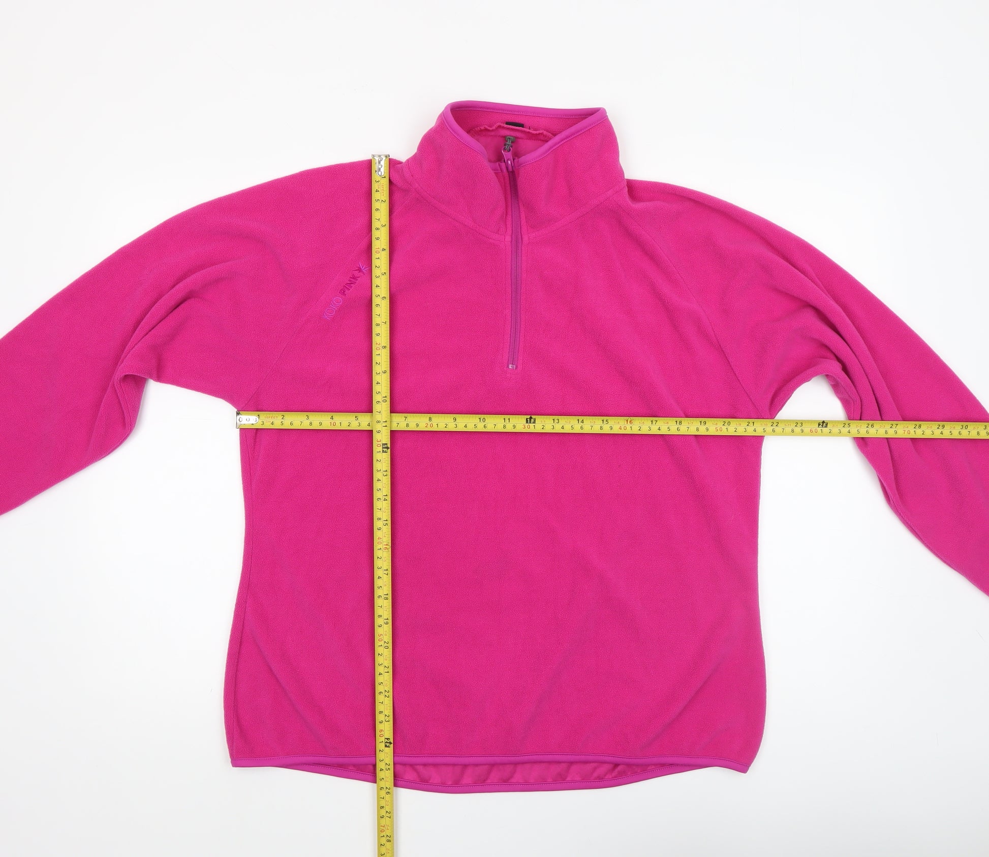 Stay snug and stylish with this vibrant pink fleece pullover by Koko Pink, designed exclusively for women who appreciate both comfort and practicality. Crafted from soft 100% polyester fleece, this sweatshirt offers lightweight warmth that's perfect for layering during chilly days or outdoor activities. The quarter zip neckline allows for adjustable ventilation, while the high collar keeps you shielded from the breeze. With its regular fit and long raglan sleeves, you’ll enjoy a flattering silhouette that moves with you effortlessly. Ideal for casual wear, hiking trips, or cosy weekends at home, this fleece sweatshirt is a must-have in any active wardrobe. The attention to detail, such as the subtle Koko Pink branding, durable stitching, and easy-care fabric, reflects its quality design. Finished in a bold, cheerful shade of pink, it adds a pop of colour to your outfit while maintaining a sleek, minimalist look. Its breathable and quick-drying properties make it practical for a range of activities from brisk morning walks to layering under coats during colder months. This versatile piece is also machine washable, ensuring easy maintenance and lasting freshness. Perfect for everyday wear across autumn, winter and spring, the Koko Pink Pullover Sweatshirt combines functionality with feminine flair. Whether you're enjoying the great outdoors or relaxing at home, this fleece keeps you warm without feeling bulky. Pair it with jeans, leggings, or your favourite hiking trousers for a casual modern look. Gently used and in excellent condition, this sweatshirt shows minimal signs of wear and remains soft and bright. A fantastic choice for women seeking comfort, warmth, and style in one easy piece — reliable, adaptable, and ready to go wherever life takes you.