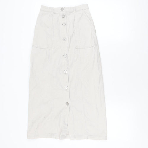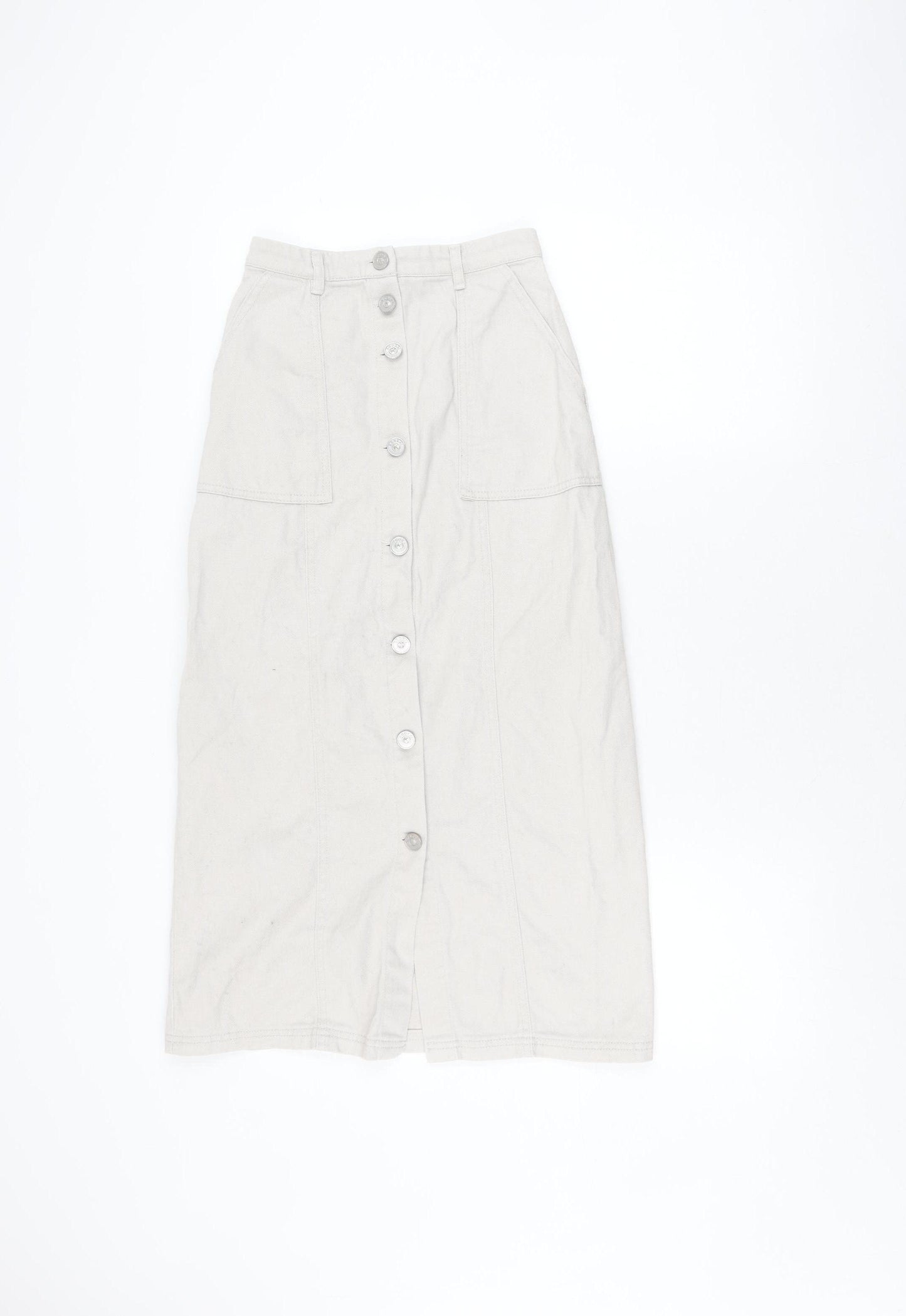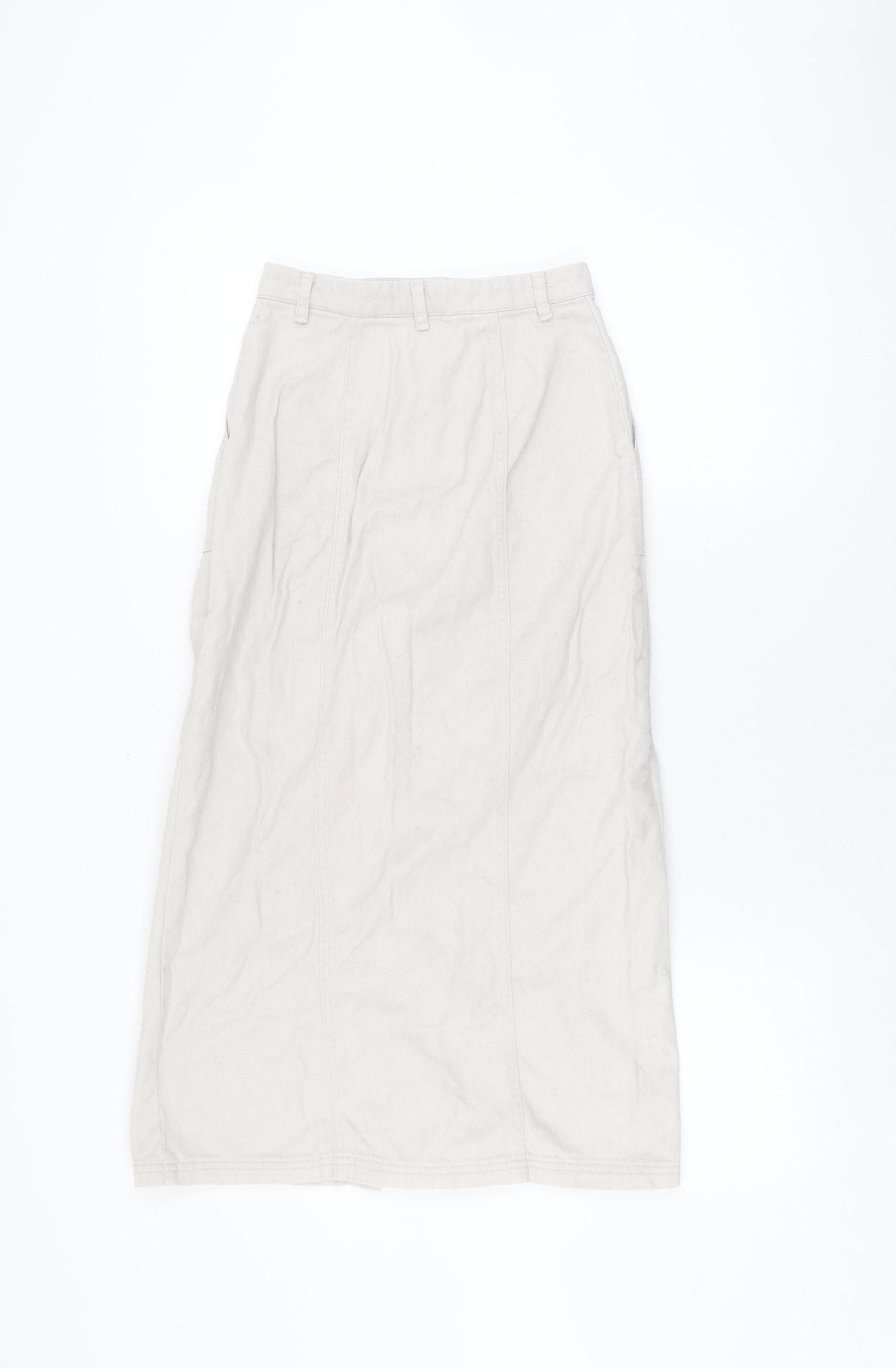 Embrace effortless style with this Kookai Women's Beige Button Cotton Skirt, available in size 6. Crafted from 100% cotton, this skirt offers superior comfort and breathability, making it a versatile piece for any wardrobe. The classic beige colour and clean, unpatterned design allow for endless styling options. The skirt features a secure button closure, adding a touch of detail while ensuring functionality. Although pre-loved, the skirt remains in excellent condition, with no visible damage, though slightly wrinkled. Ideal for versatile dressing, pair this skirt with a variety of tops for a chic, casual look or an elegant ensemble. Invest in a piece that combines quality, comfort, and timeless style, perfect for any occasion. This Kookai skirt is machine washable, ensuring easy care and maintenance. Make it yours and enjoy the sophisticated simplicity it brings to your wardrobe.