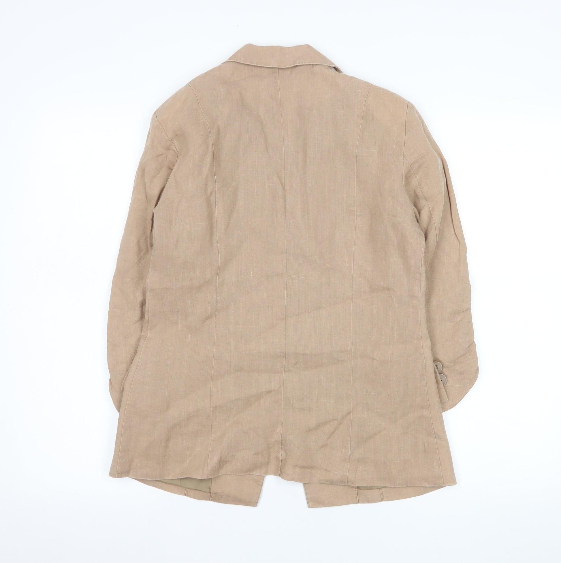 Marks and Spencer Women Beige Linen Blend Single-Breasted Blazer Size 8