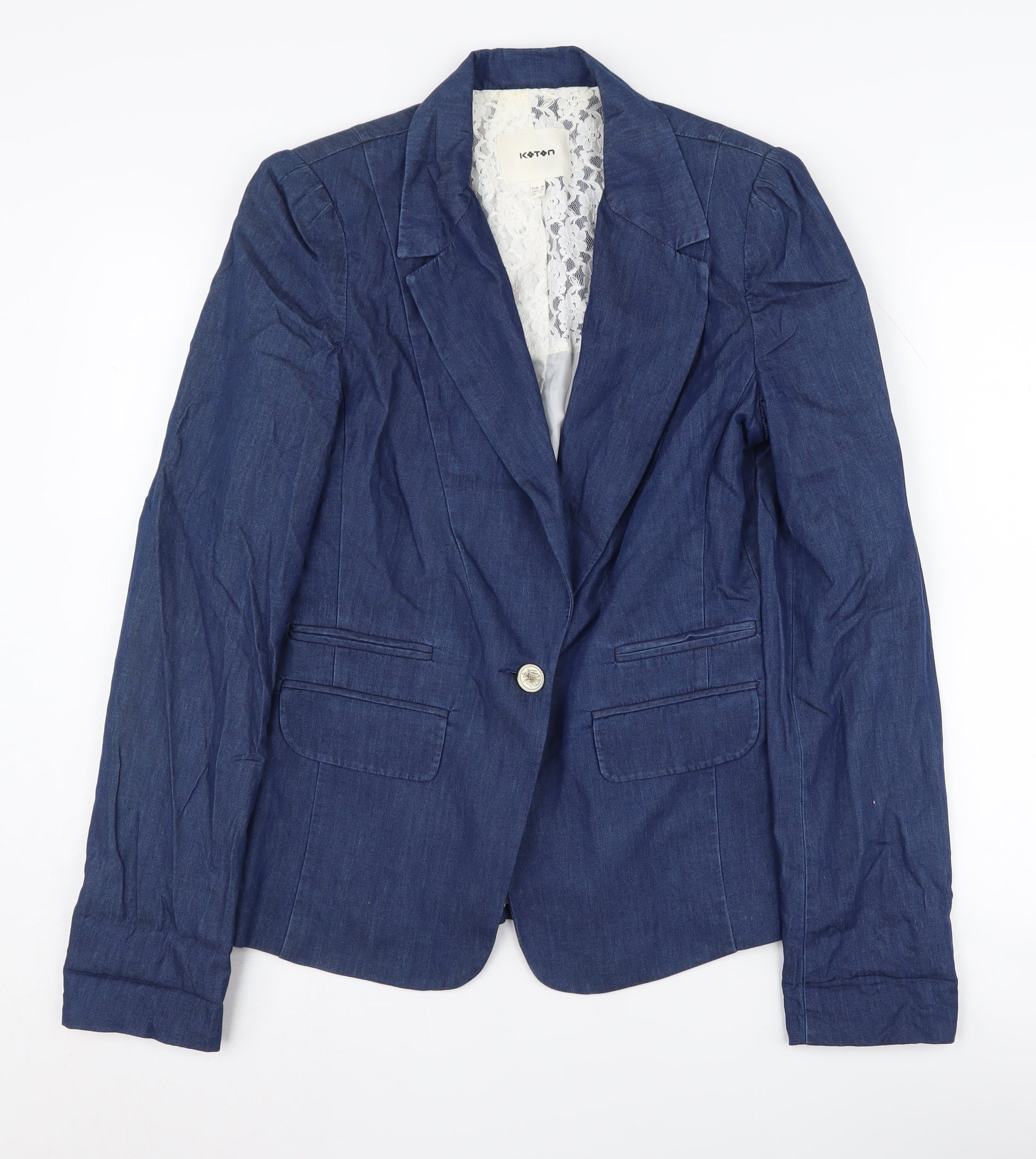 Elevate your style with this timeless Koton Women's Blue Denim Blazer, perfect for casual occasions. Designed for modern women, the blazer features a regular length and single-breasted cut with a classic notch lapel style, offering a sophisticated yet laid-back look. Made from 100% cotton denim, it provides comfort and durability, while the 100% polyester lining adds a smooth finish. This stylish blazer is easy to pair with various outfits, making it a versatile addition to your wardrobe. The blazer is in excellent condition, with only minor wrinkles that can be easily smoothed out, ensuring you look chic and polished. Ideal for both Autumn and Spring seasons, this wardrobe staple is a must-have for fashion-forward individuals. Don't miss out on adding this beautiful piece to your collection, combining practicality and elegance effortlessly.