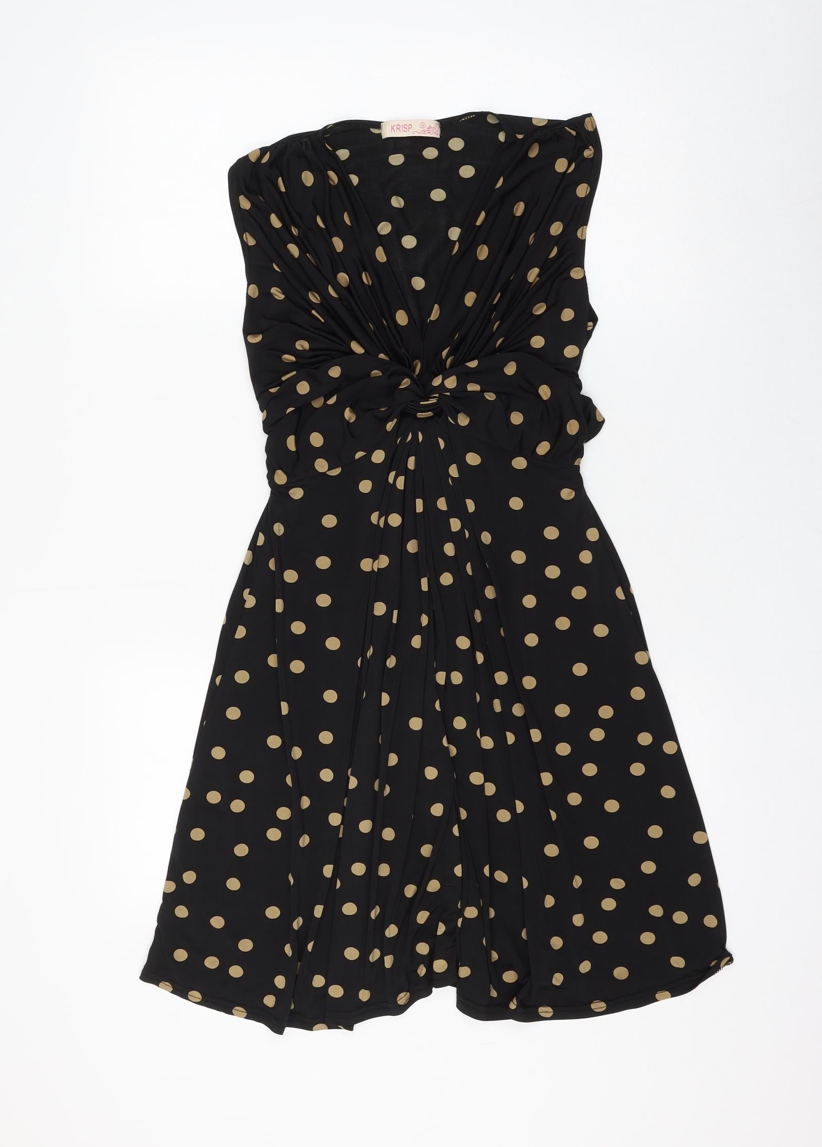 Womens Black Polka Dot Polyester Skater Dress Size 16 V-Neck Pullover