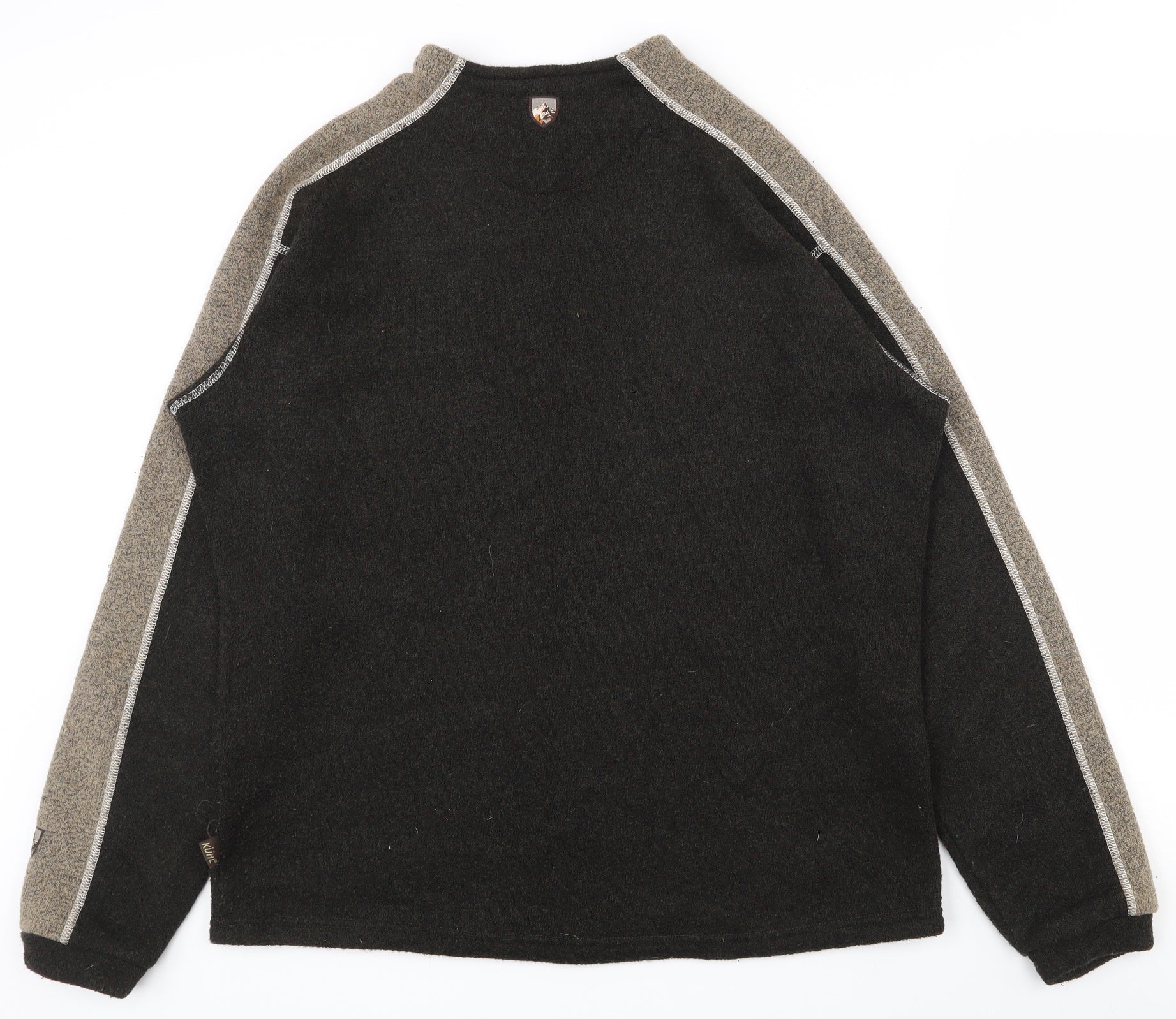 Mens Brown Houndstooth Acrylic Pullover Sweatshirt Size M - Thumb holes