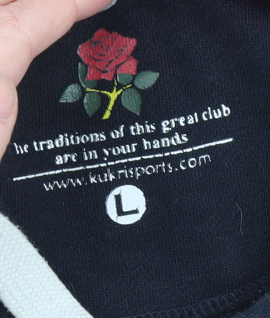 Show off your sporty side with this Kukri Lancashire County Cricket Club hoodie, designed for both comfort and casual style. Made from a soft and durable 56% cotton and 44% polyester blend, this pullover hoodie provides outstanding warmth and flexibility, perfect for wearing to chilly matches, casual days out, or lounging at home. The navy blue body is complemented by a bold red inner hood lining and crisp white drawstrings, giving it a classic and standout look that enthusiasts of Lancashire cricket will immediately recognise. The front features a prominent Lancashire County Cricket Club logo in stylish red and white graphic print, celebrating authentic team pride. Designed with a traditional fit, this men’s hoodie has long sleeves with ribbed cuffs and hem for a secure, comfortable fit that retains warmth. It also includes a handy front kangaroo pocket for practicality. The soft fleece fabric ensures all-day comfort, making it an excellent choice across autumn, spring, and winter seasons. Kukri is well known for its quality sportswear and this piece lives up to that reputation. The interior label indicates a men’s size Large, aligning with a regular UK fit. While gently used, this hoodie remains in excellent condition with only minor signs of wear, showing no significant blemishes or damage. Perfect for fans of the club or anyone who appreciates sporty British heritage apparel. Ideal for a casual outing, training day, or simply expressing team loyalty, this hoodie combines durability, comfort, and style in one versatile package. Add this Kukri Lancashire County Cricket Club hoodie to your collection today and enjoy a blend of warmth, authenticity, and classic sporting style that fits perfectly into your wardrobe.